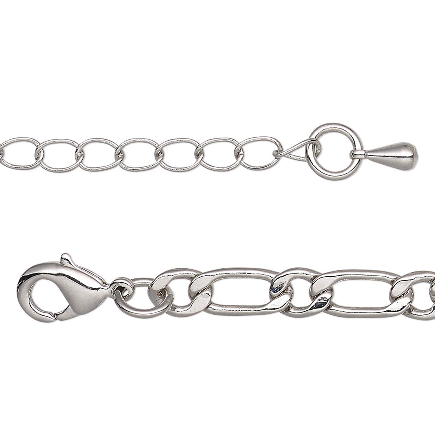 Flat oval brass chain with imitation rhodium plating offers the look of precious metal at a lower cost. Bracelet features 2-inch extender chain with lobster claw clap for secure closure.