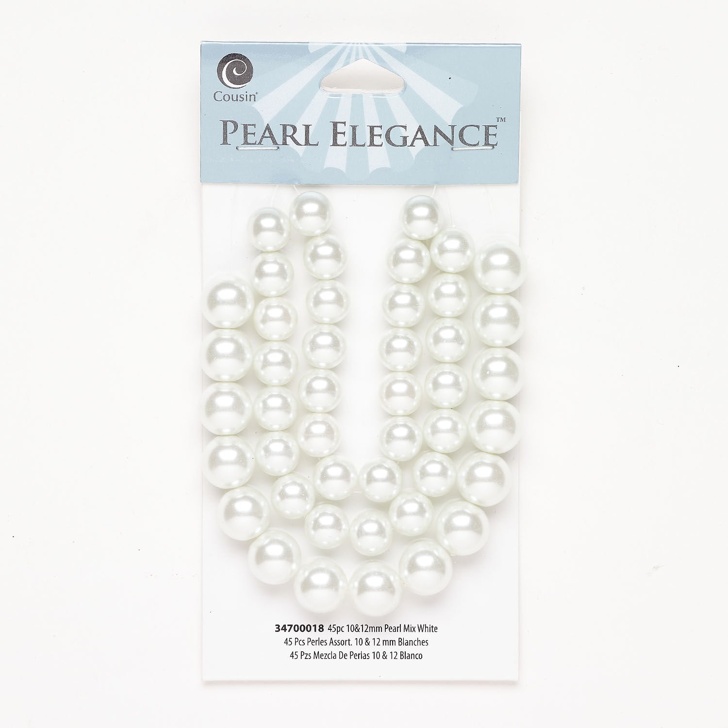 Glass pearl assortment 1pkg45, white, 10mm and 12mm round.