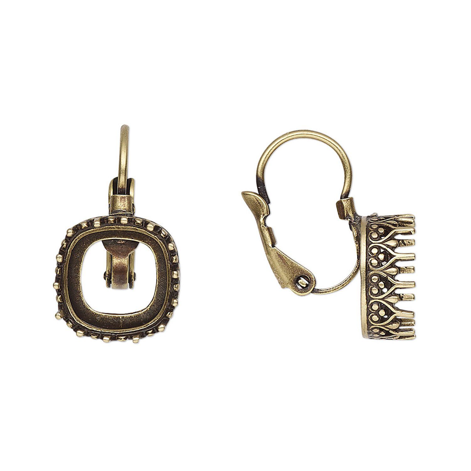 These leverback ear wires accommodate crystals 10mm faceted cushion fancy stones(4470) and have gallery wire bezels that are easily pushed into place with a bezel pusher. The antique brass plating is a customer-favorite metal tone for creating vintage-inspired jewelry.