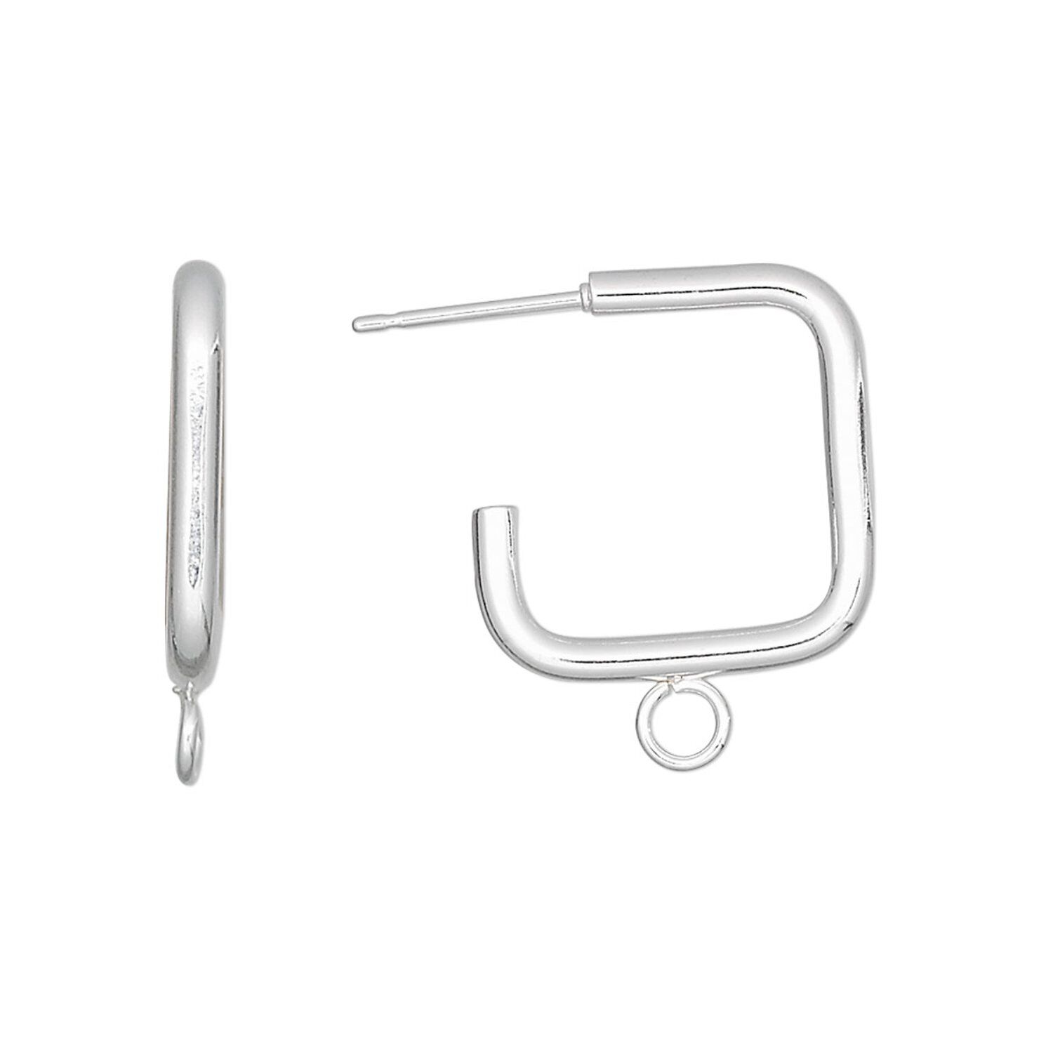 Earstud 1pkg10 silver-plated, 17mm 0.75 square / closed loop, steel / stainless steel 5 pair