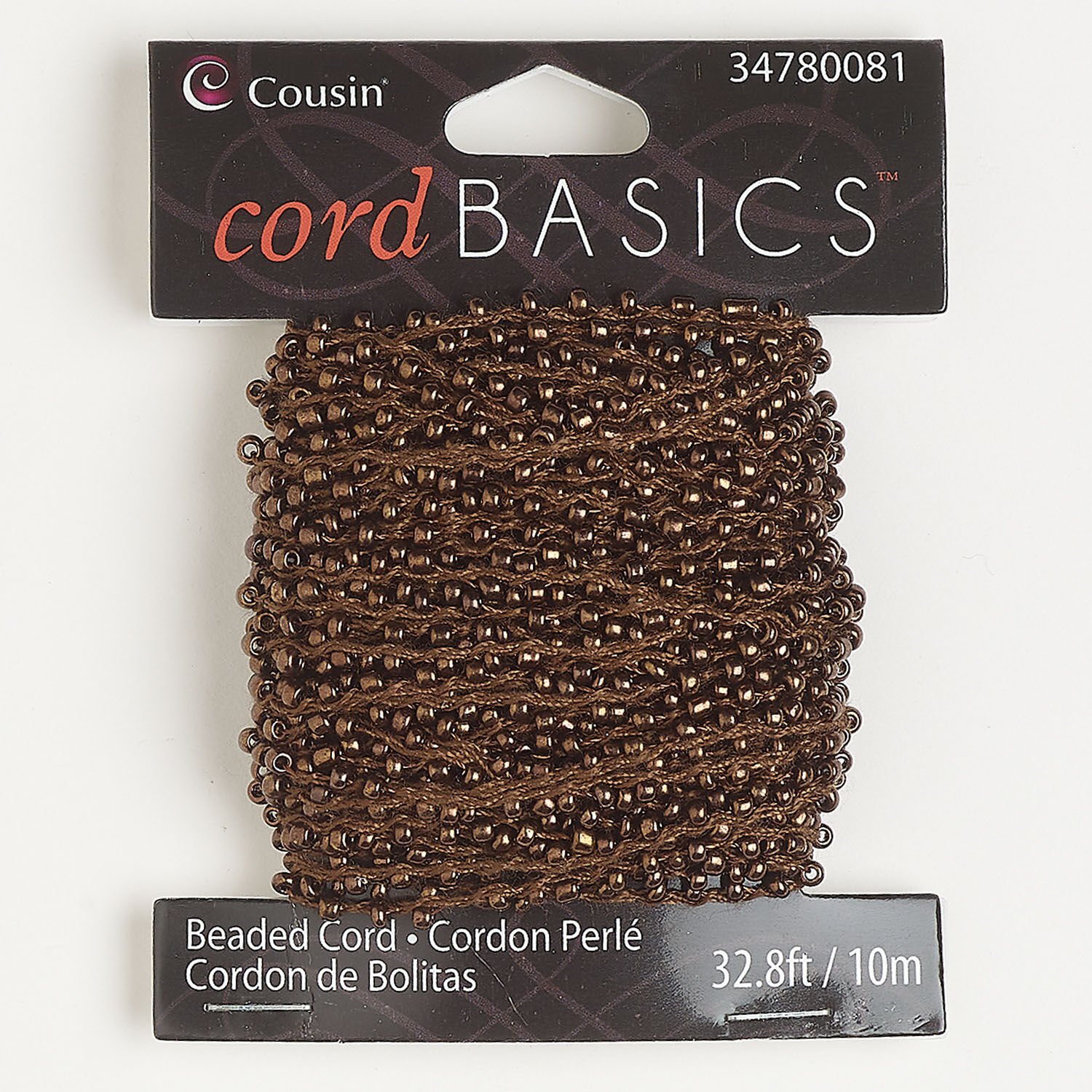 Seed bead cord 1pkg1, nylon and glass, brown, 2mm hand-crocheted round, 32 feet.