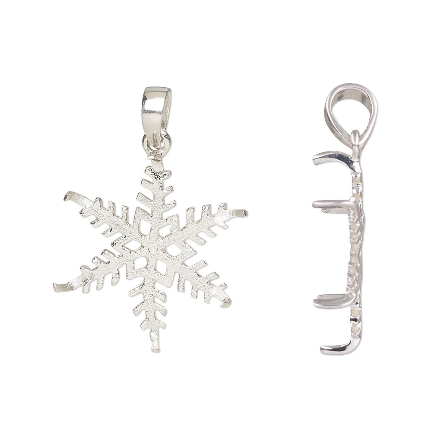 Pendant, sterling silver, 20mm snowflake and 18mm 6-prong round setting. Sold individually.