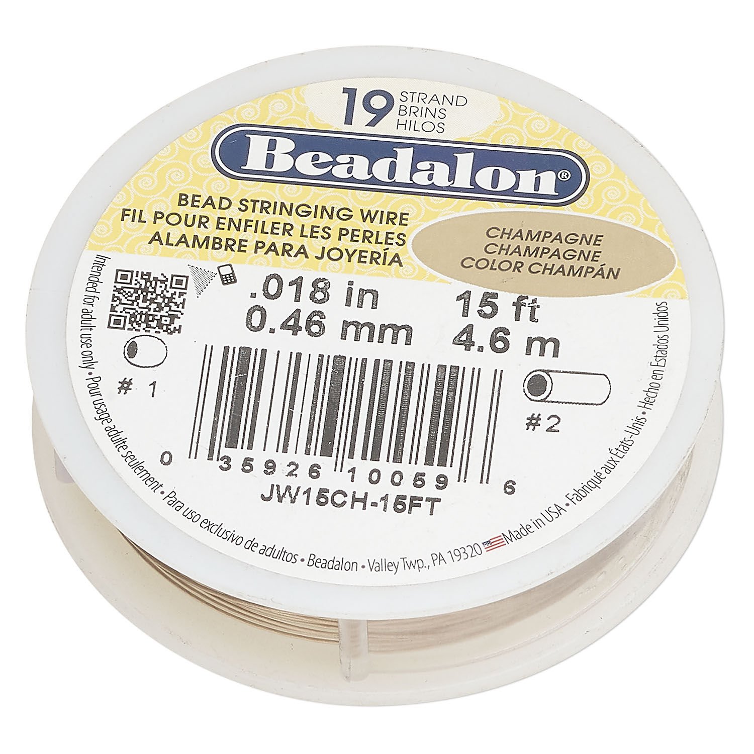 Wire, Beadalon® 1pkg1, stainless steel, champagne, 19 strand, 0.018-inch diameter, 15 feet.