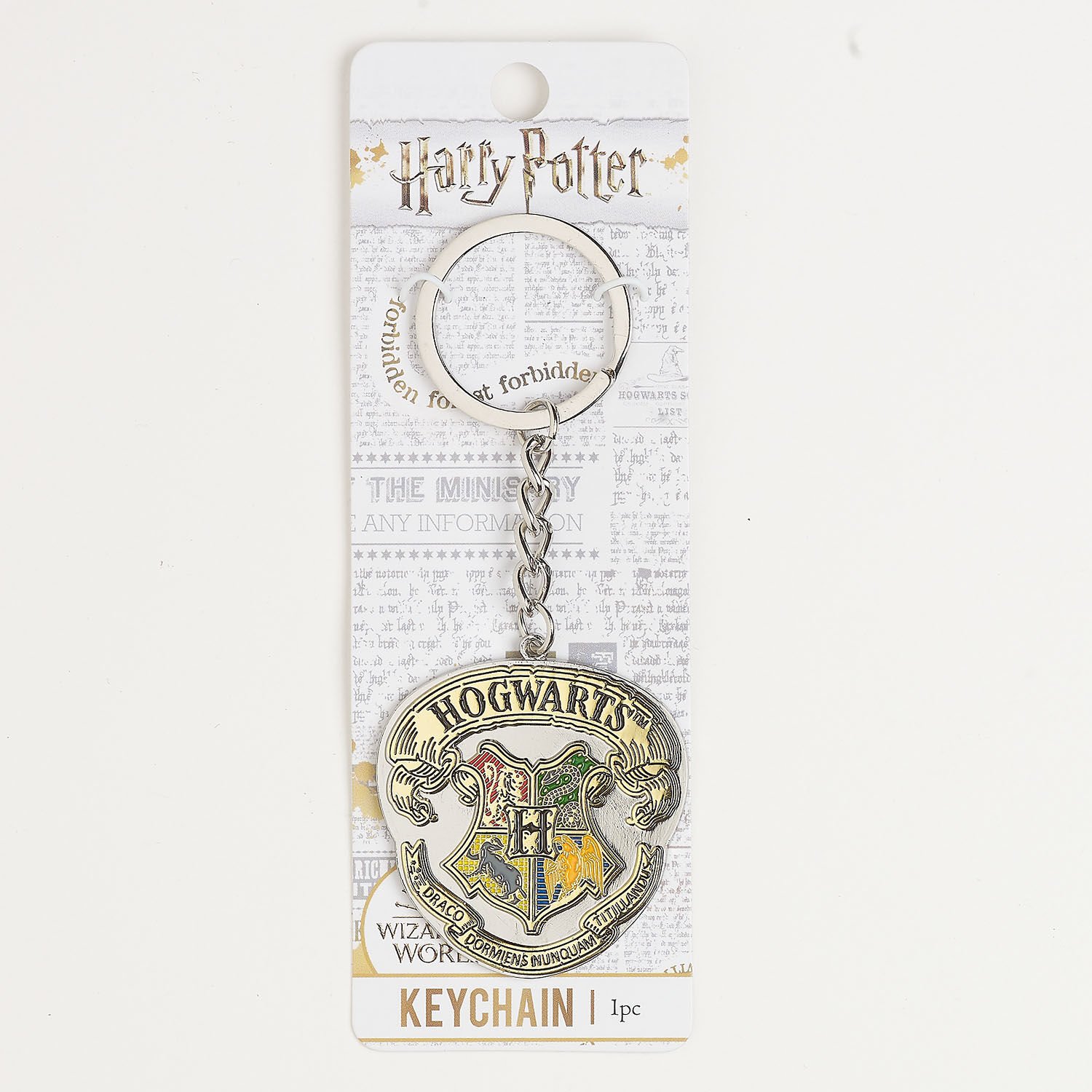 Keychain, silver-finished brass and steel / enamel, multicolored, 4 inches with 45x43mm Hogwarts™ crest and split ring.