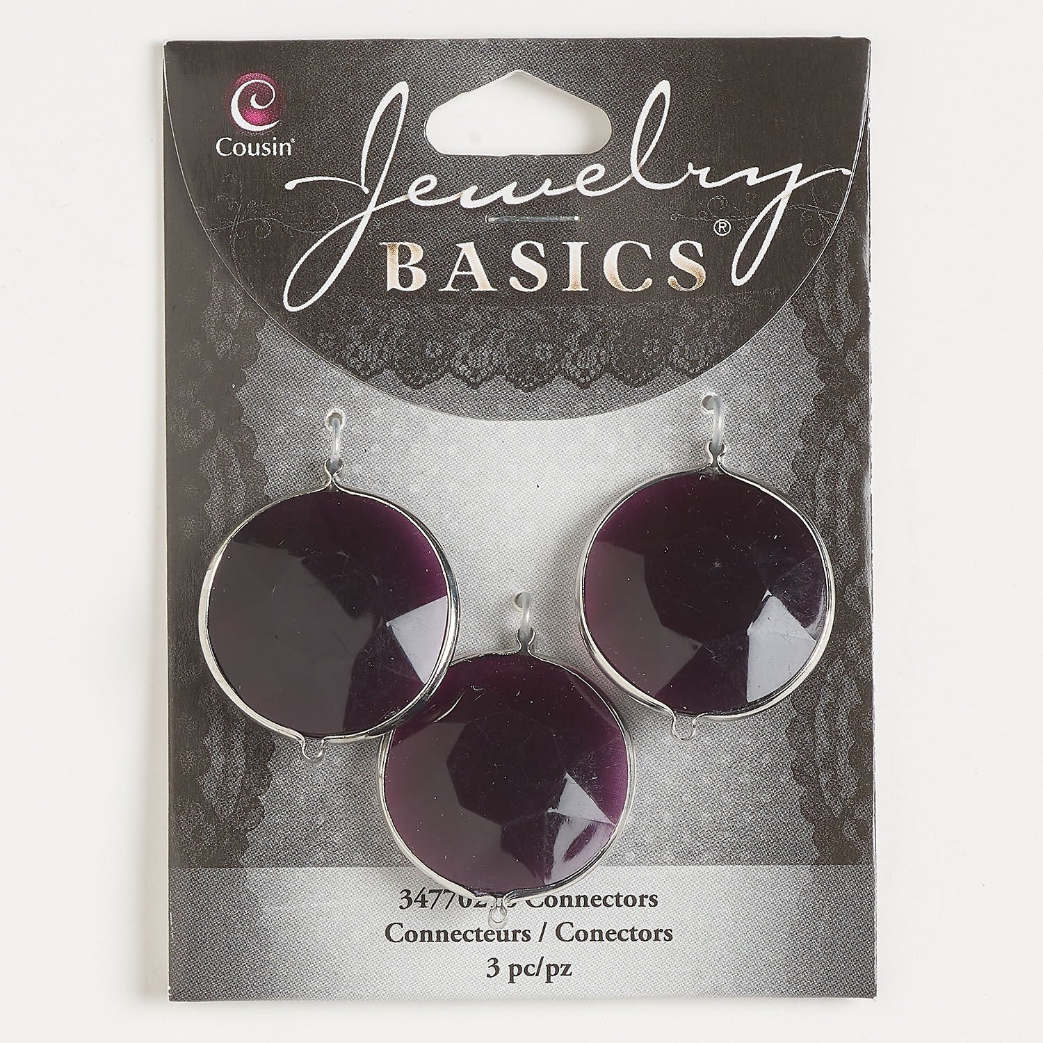 Link 1pkg3, silver-finished copper and acrylic, dark purple, 26mm double-sided faceted round.