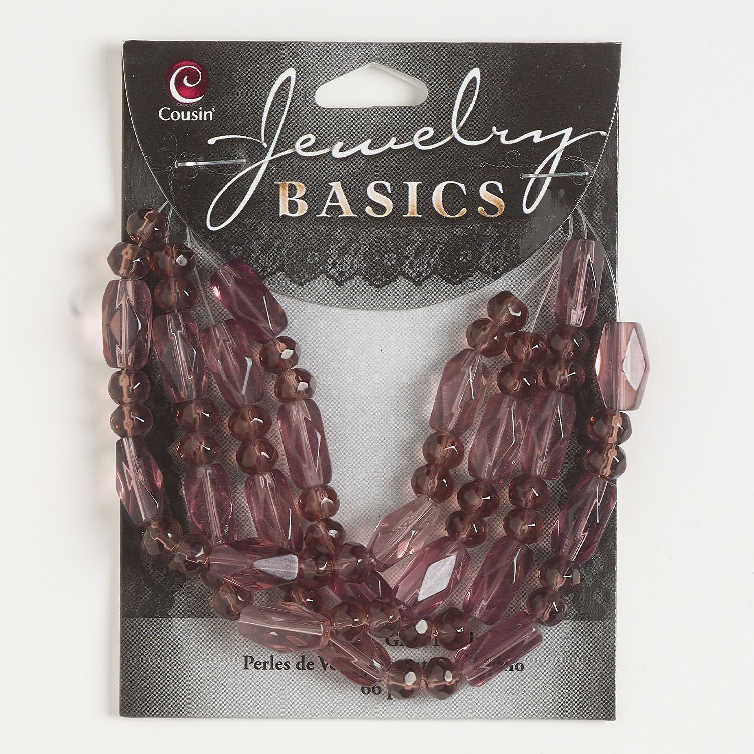 Bead mix 1pkg66, glass, translucent purple, 6x4mm-6x5mm faceted rondelle and 12x5mm-12x6mm rectangle.