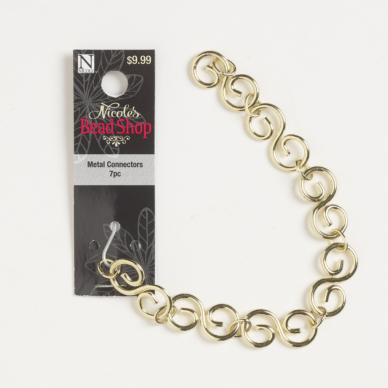 Connector 1pkg7, gold-finished steel, 23x12mm S with jump ring spacer.