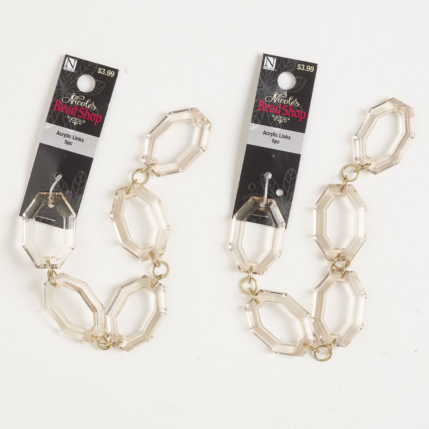 Link 1pkg10, gold-finished steel and acrylic, light peach, 34x23mm-34x24mm open 8-sided faceted oval.