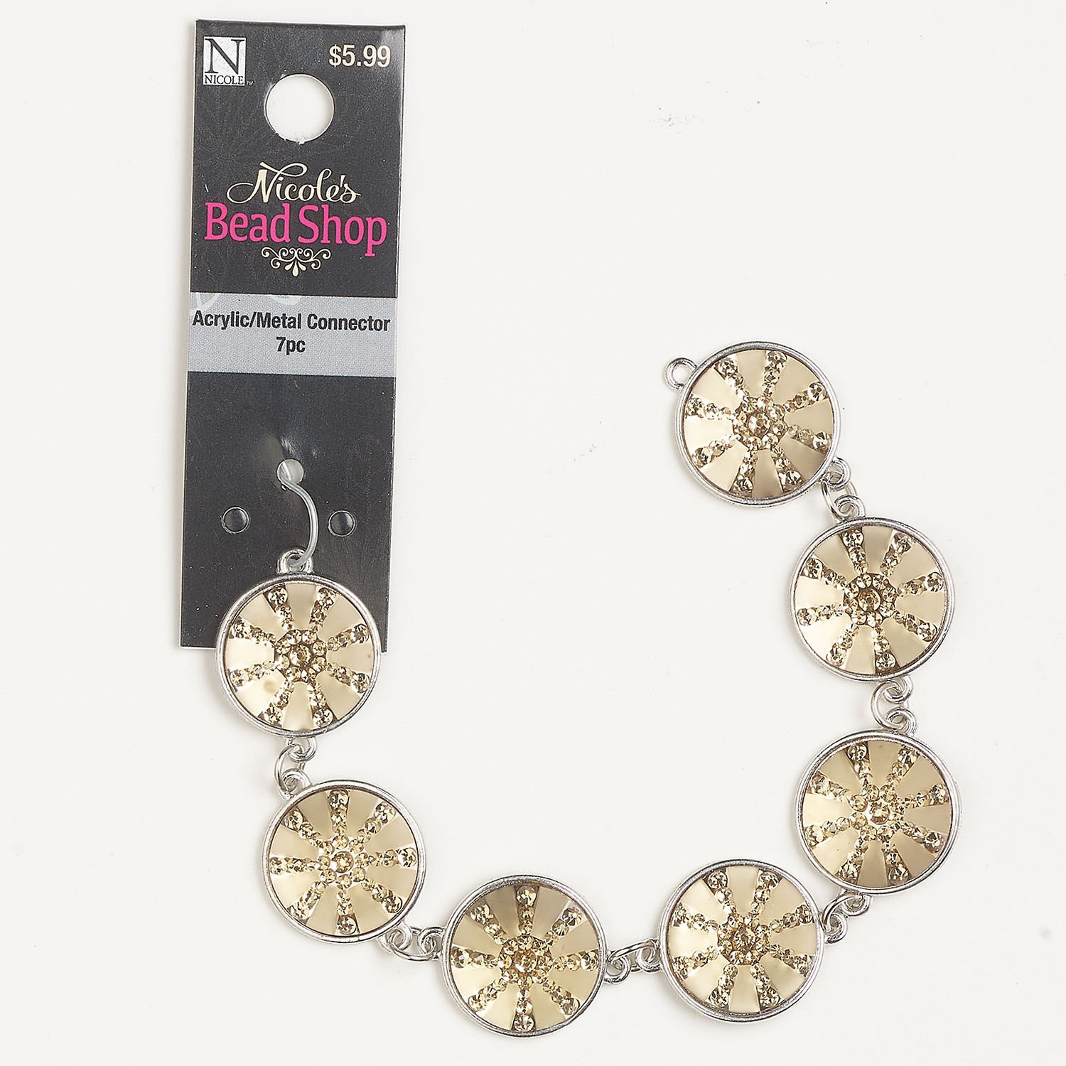 Link 1pkg7, antique silver-finished brass and steel / acrylic, topaz, 20mm frosted round with star.