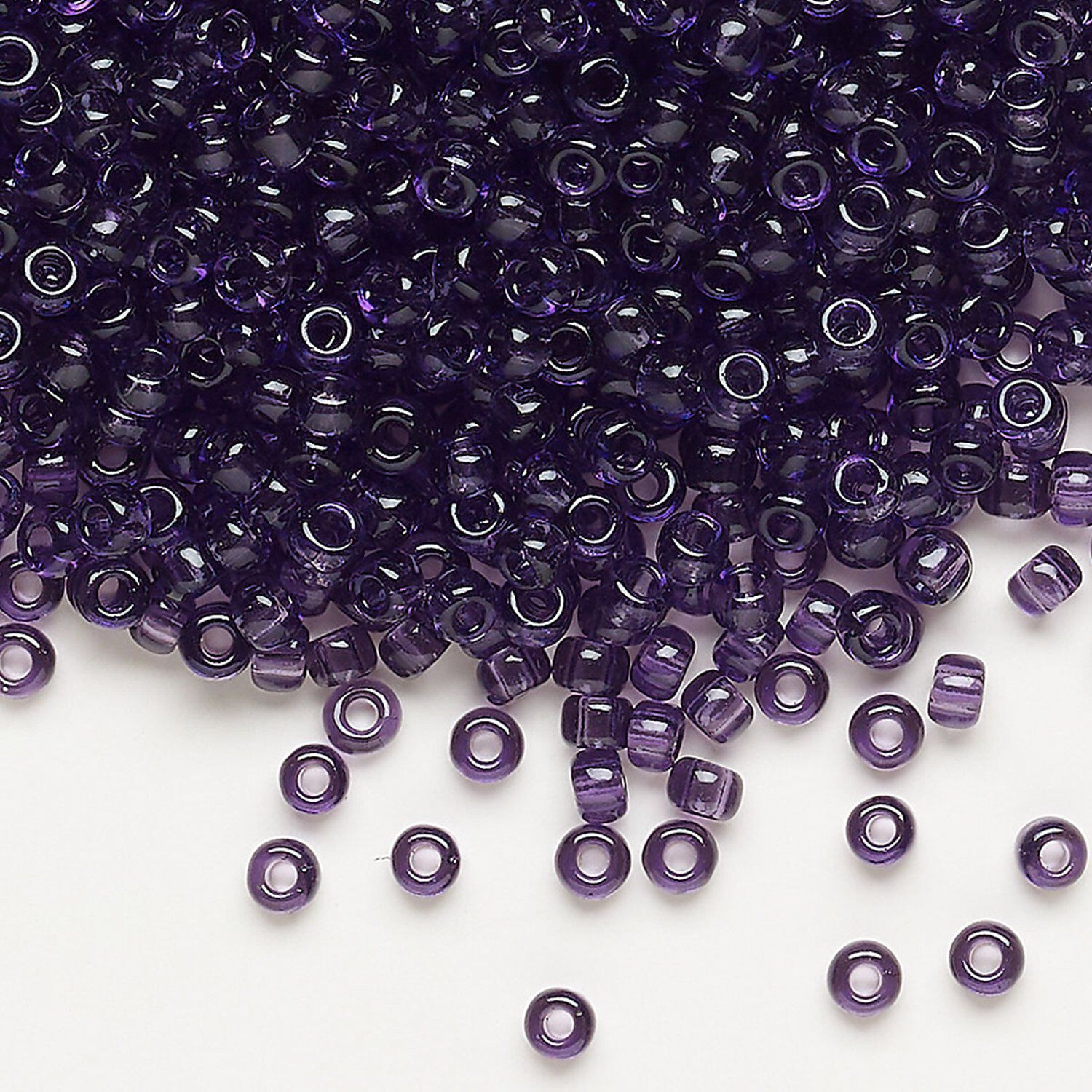 Seed bead, Dyna-Mites™, glass, transparent amethyst purple, #8 round. Sold per 40-gram pkg.