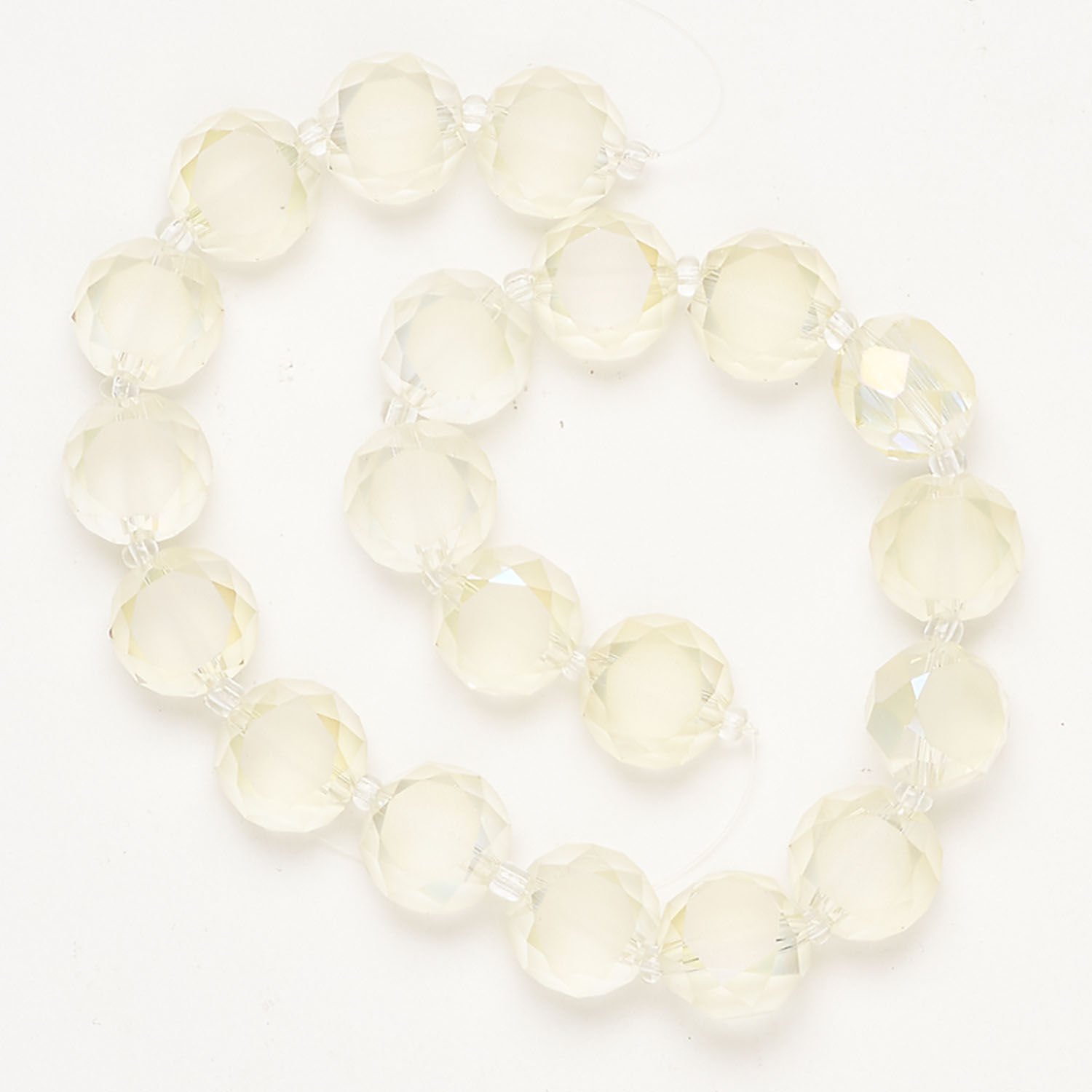 Bead 1pkg20, glass, translucent light yellow, 10mm frosted faceted flat puffed round.