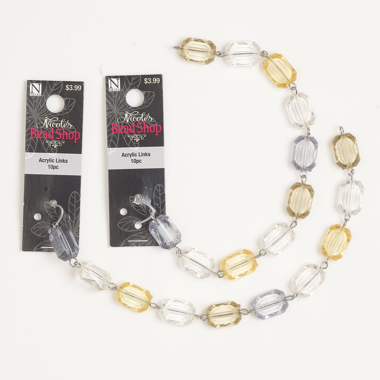 Link assortment 1pkg20, silver-finished "pewter" (zinc-based alloy) / acrylic, mixed colors, 15x11mm faceted rectangle.