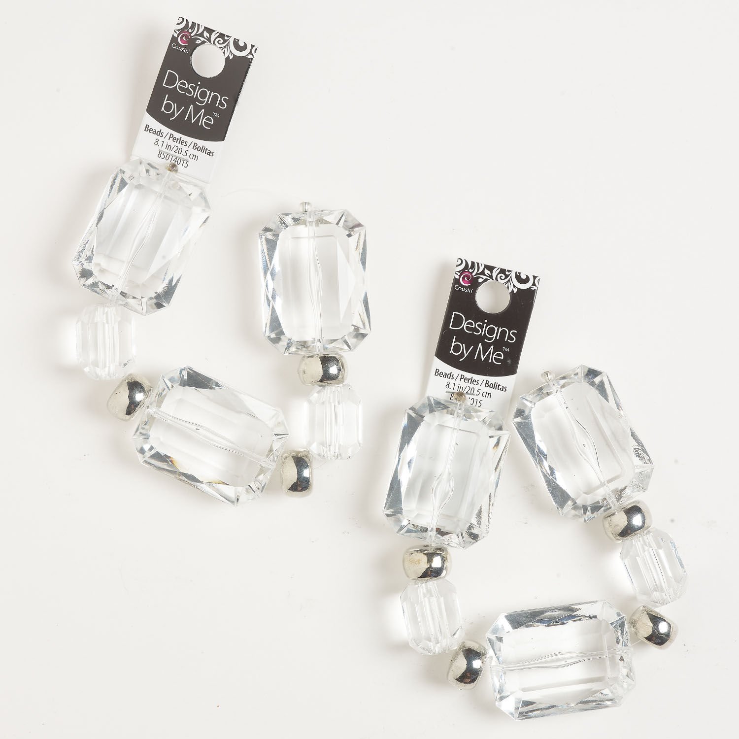 Bead 1pkg2, acrylic and CCB, silver, 43x32mm faceted rectangle / 22x16.5mm faceted barrel / 15x10mm rondelle, 8 inches.
