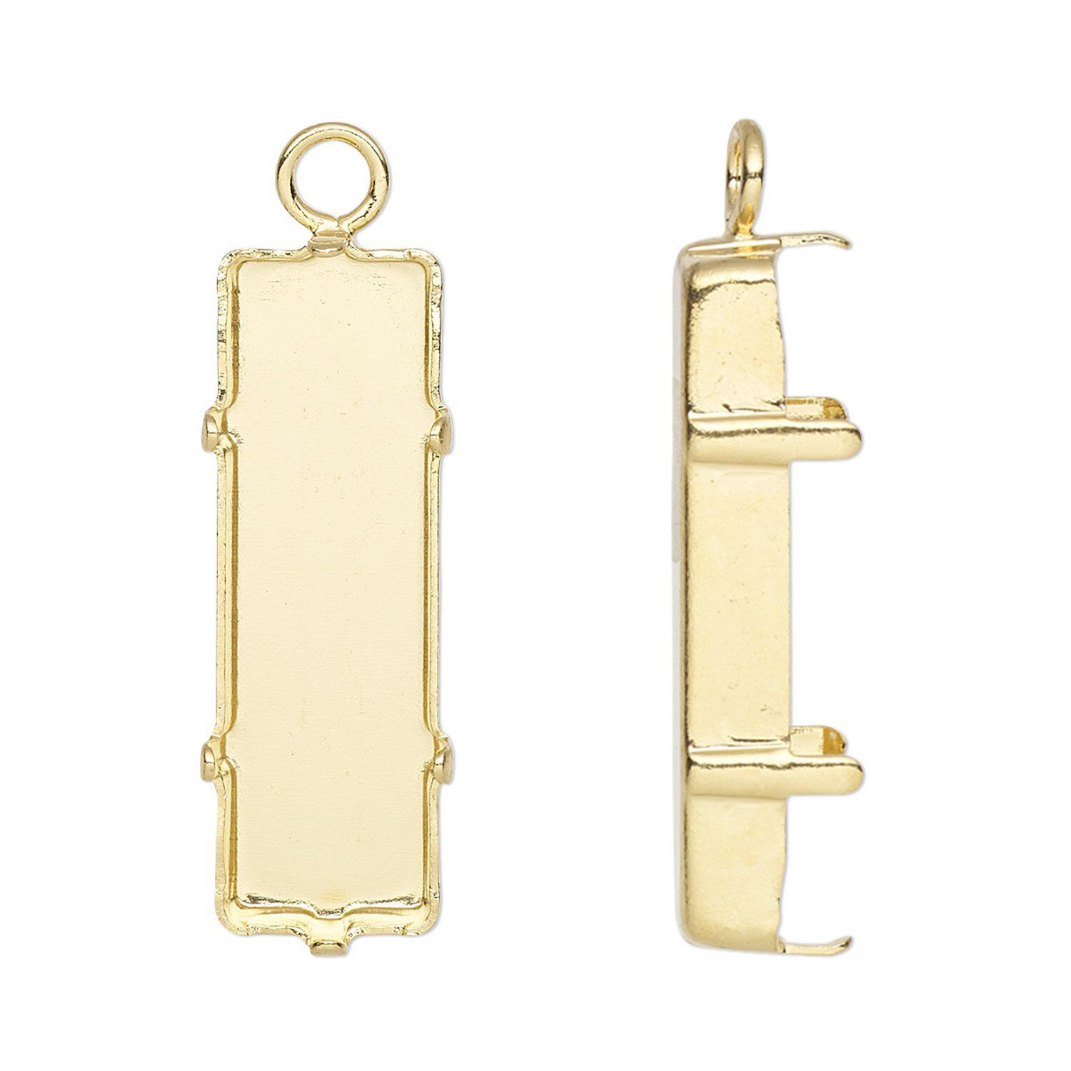 Drop, gold-plated brass, 25x9mm rectangle with closed loop and 24x8mm 6-prong faceted rectangle setting (4547) with closed back. Sold per pkg of 4.