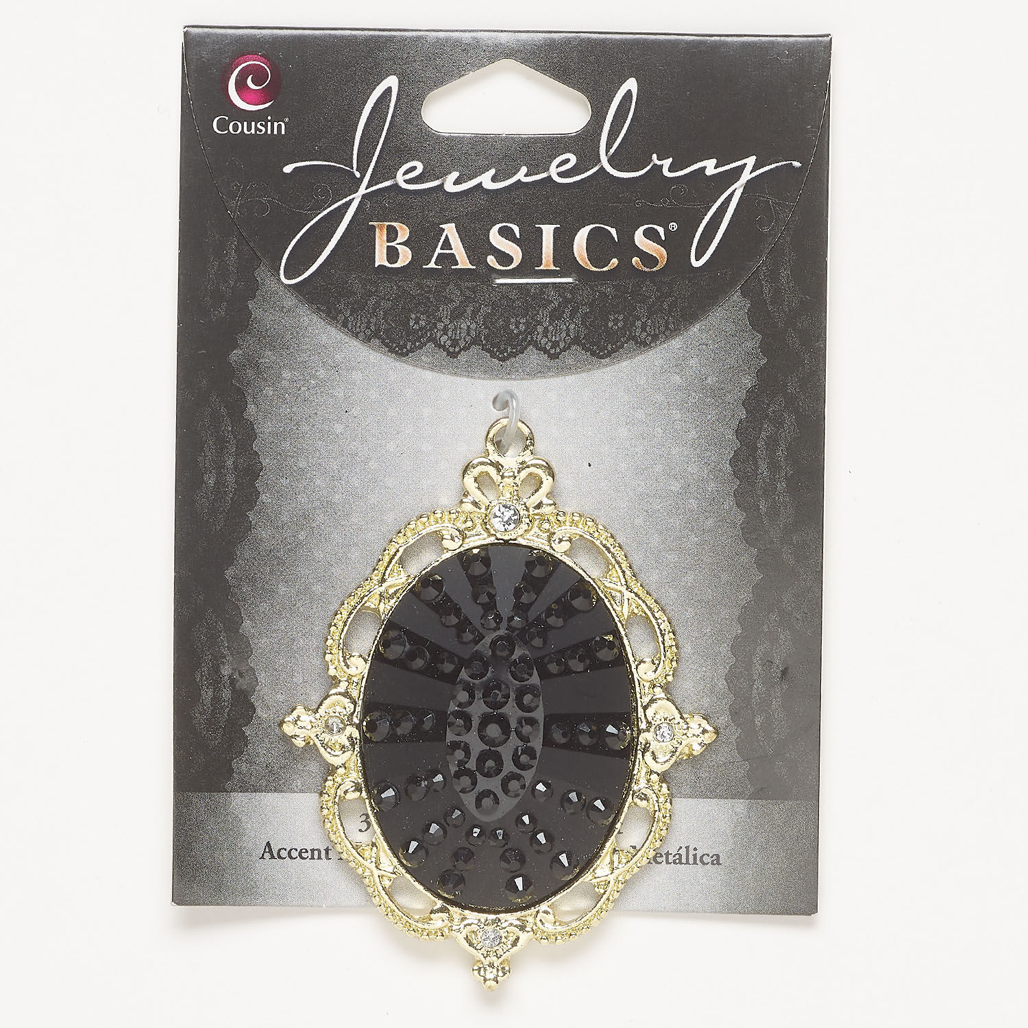 Focal 1pkg1, gold-finished brass and acrylic, black / matte black / clear, 58x48mm fancy oval.