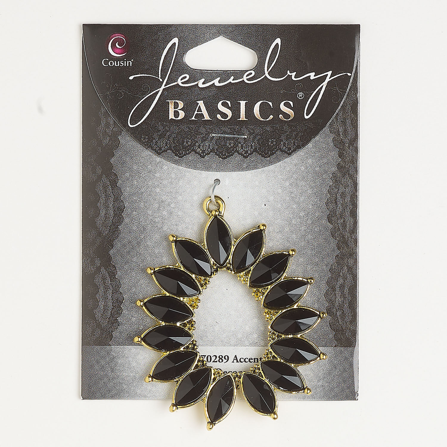 Focal 1pkg1, antique gold-finished brass and acrylic, black, 55x49mm fancy teardrop.