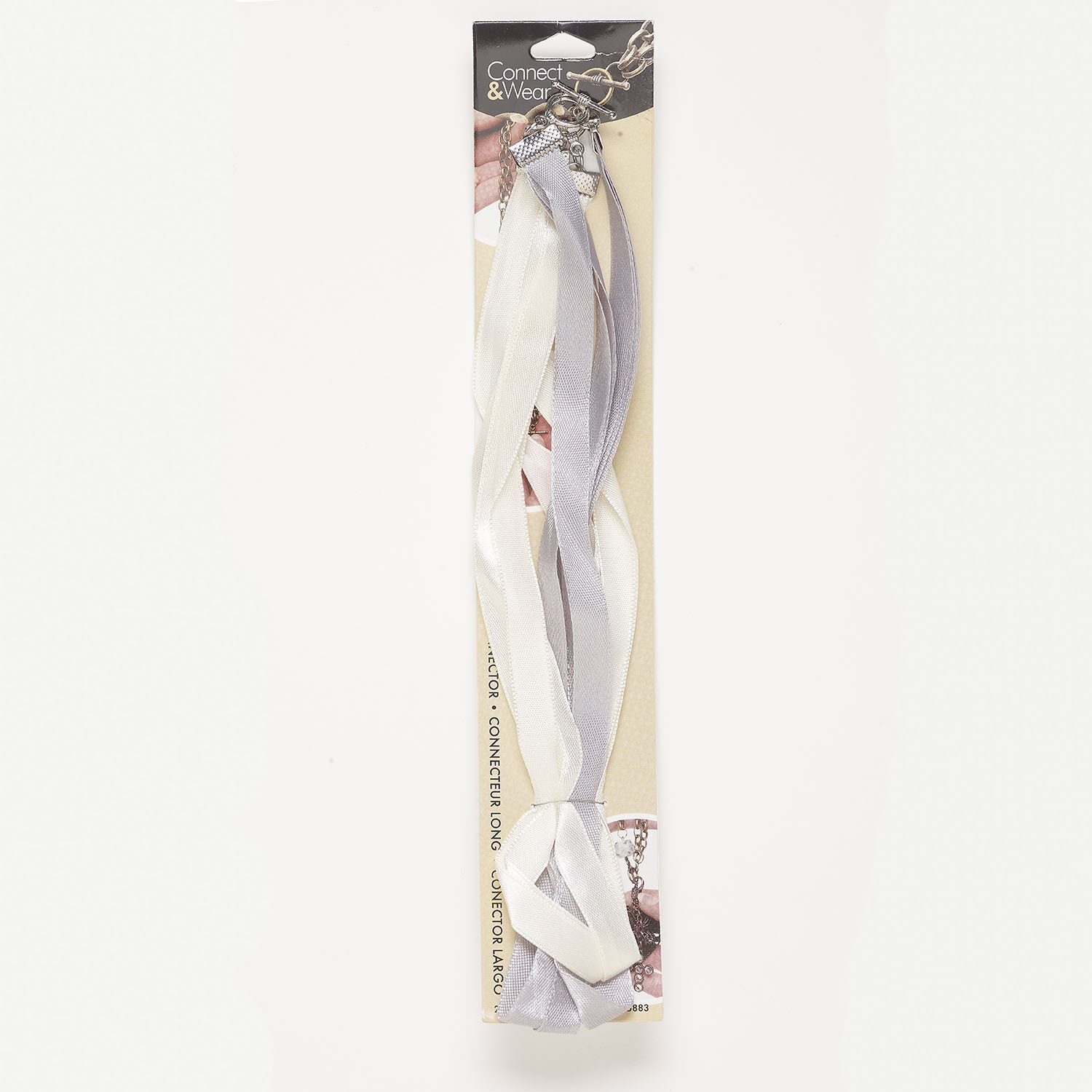 Necklace component assortment 1pkg2, nylon / silver-finished steel and brass, grey and white, 10mm wide 3-strand, 18 inches with toggle clasp.