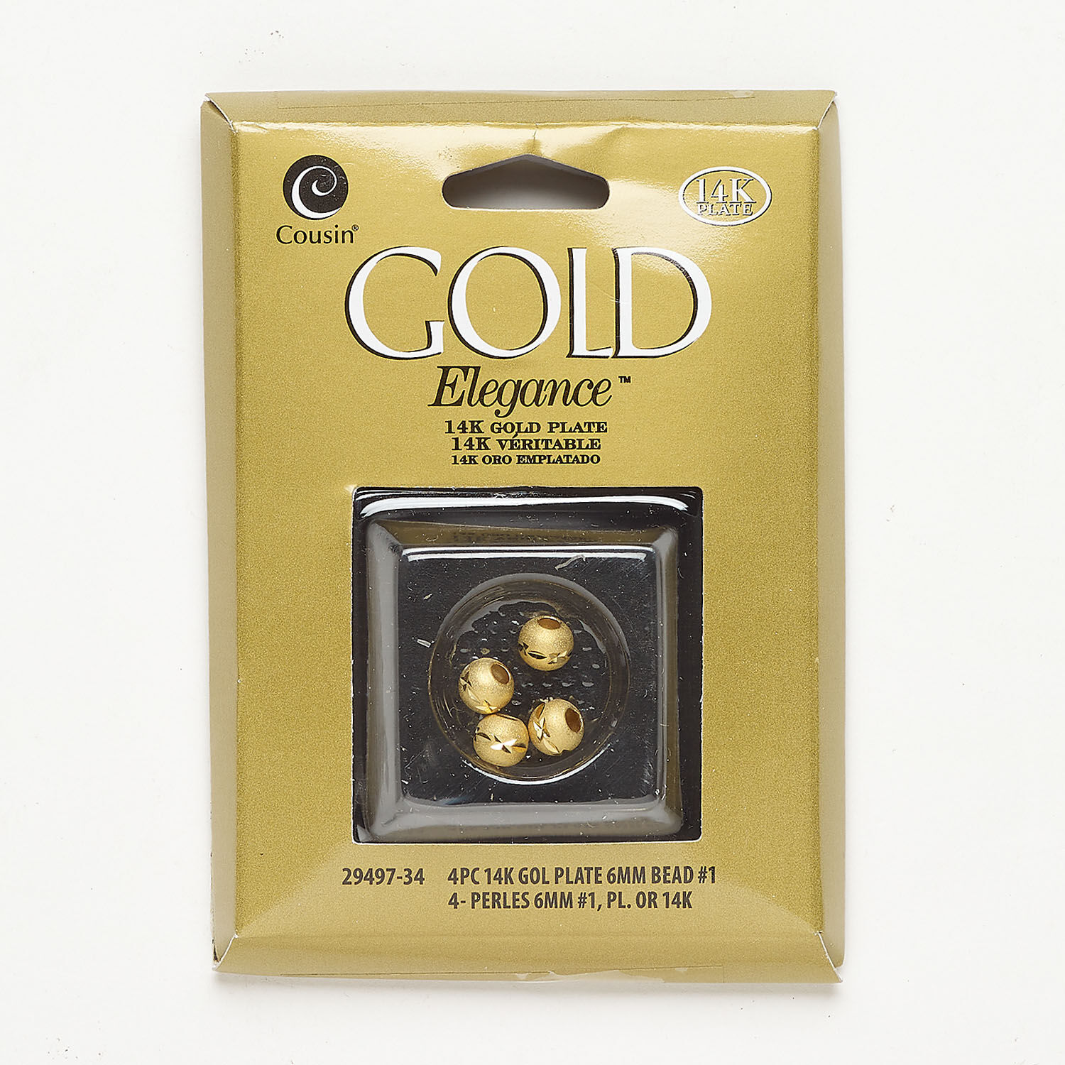 Bead 1pkg4, matte gold-plated copper, 6x5mm carved rondelle.