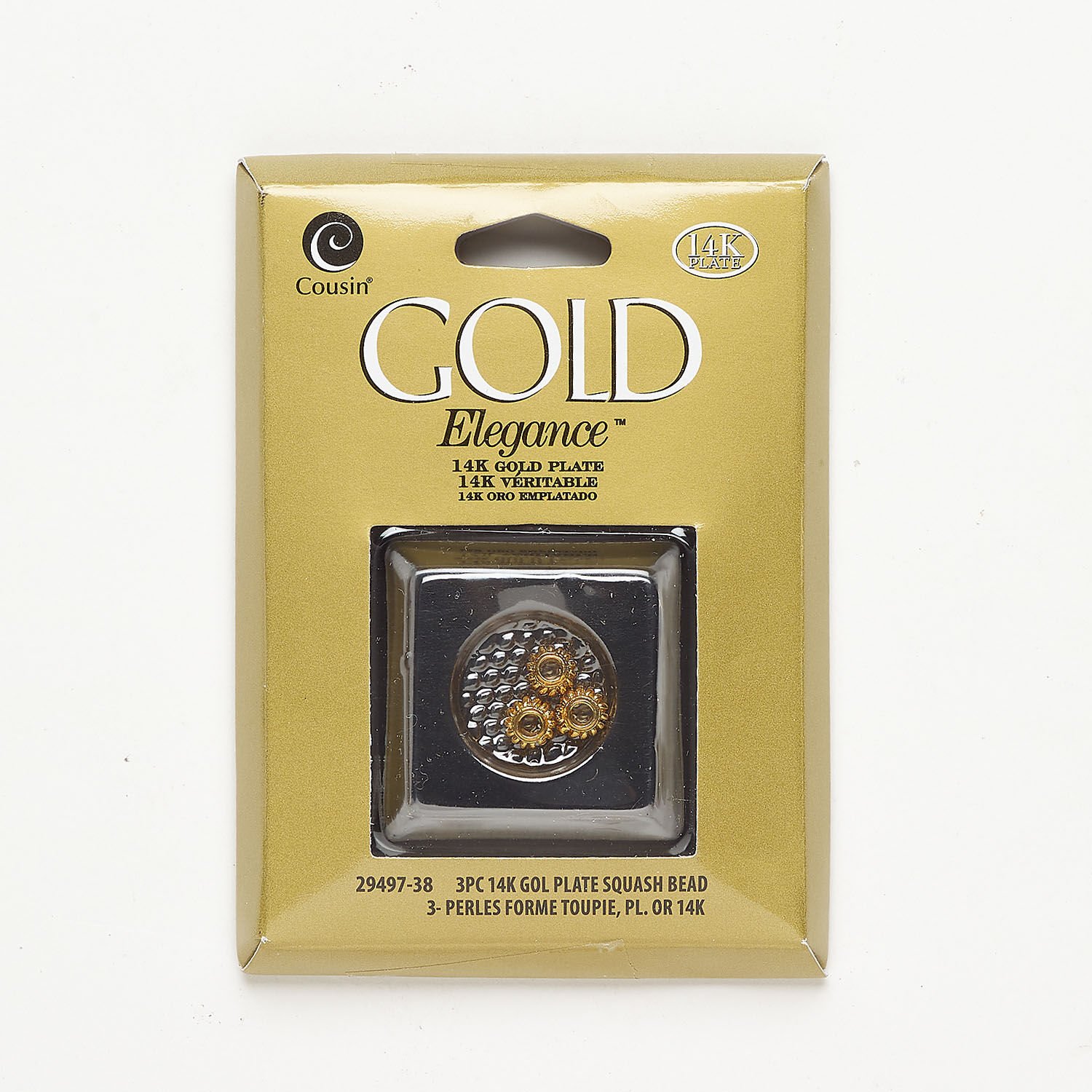 Bead 1pkg3, gold-plated copper, 6x5mm corrugated rondelle.