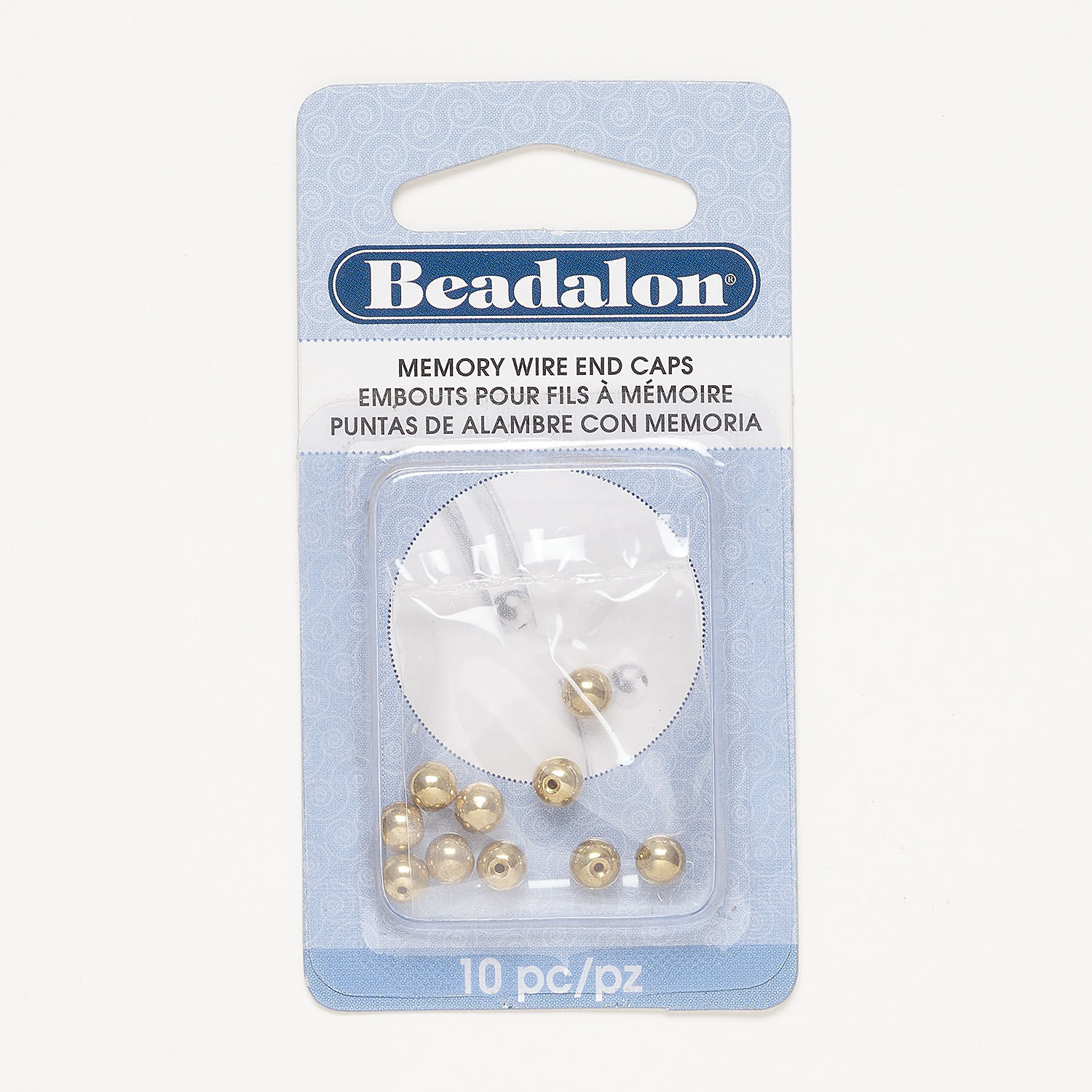 Bead end 1pkg10, glue-on, Beadalon®, gold-finished brass, 5mm half-drilled round.
