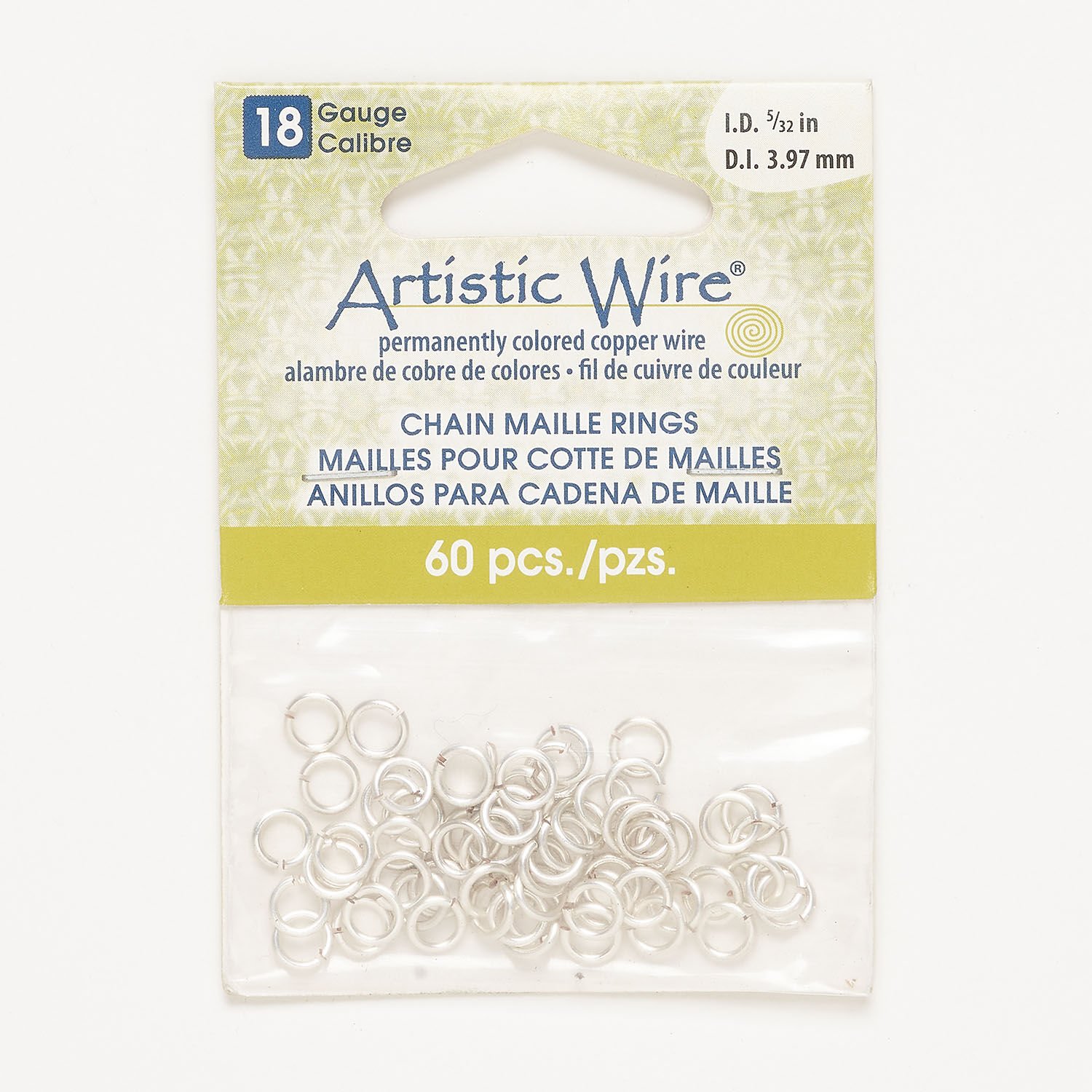 Jump ring 1pkg60, Artistic Wire®, silver-finished copper, 6mm round, 4mm inside diameter, 18 gauge.