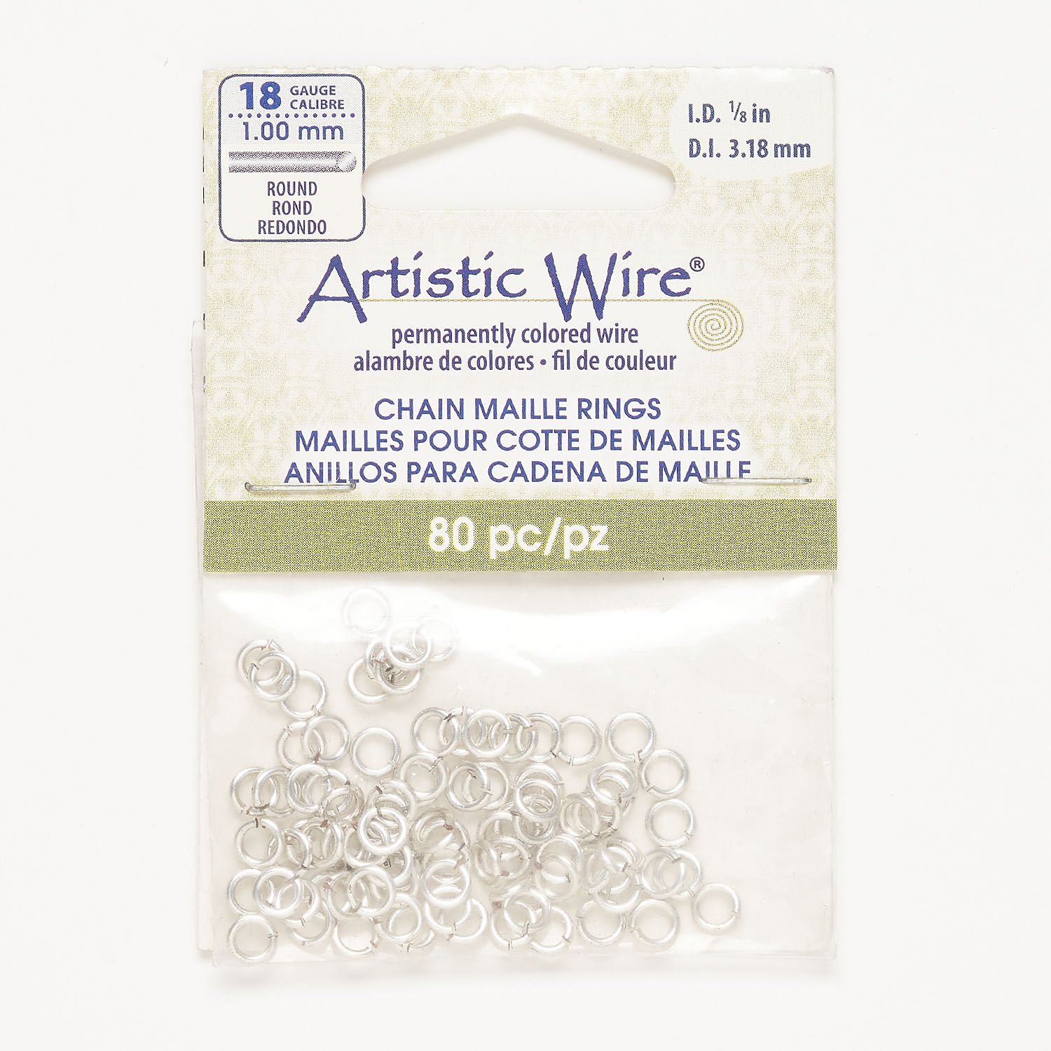 Jump ring 1pkg80, Artistic Wire®, silver-finished copper, 5mm round, 3.2mm inside diameter, 18 gauge.