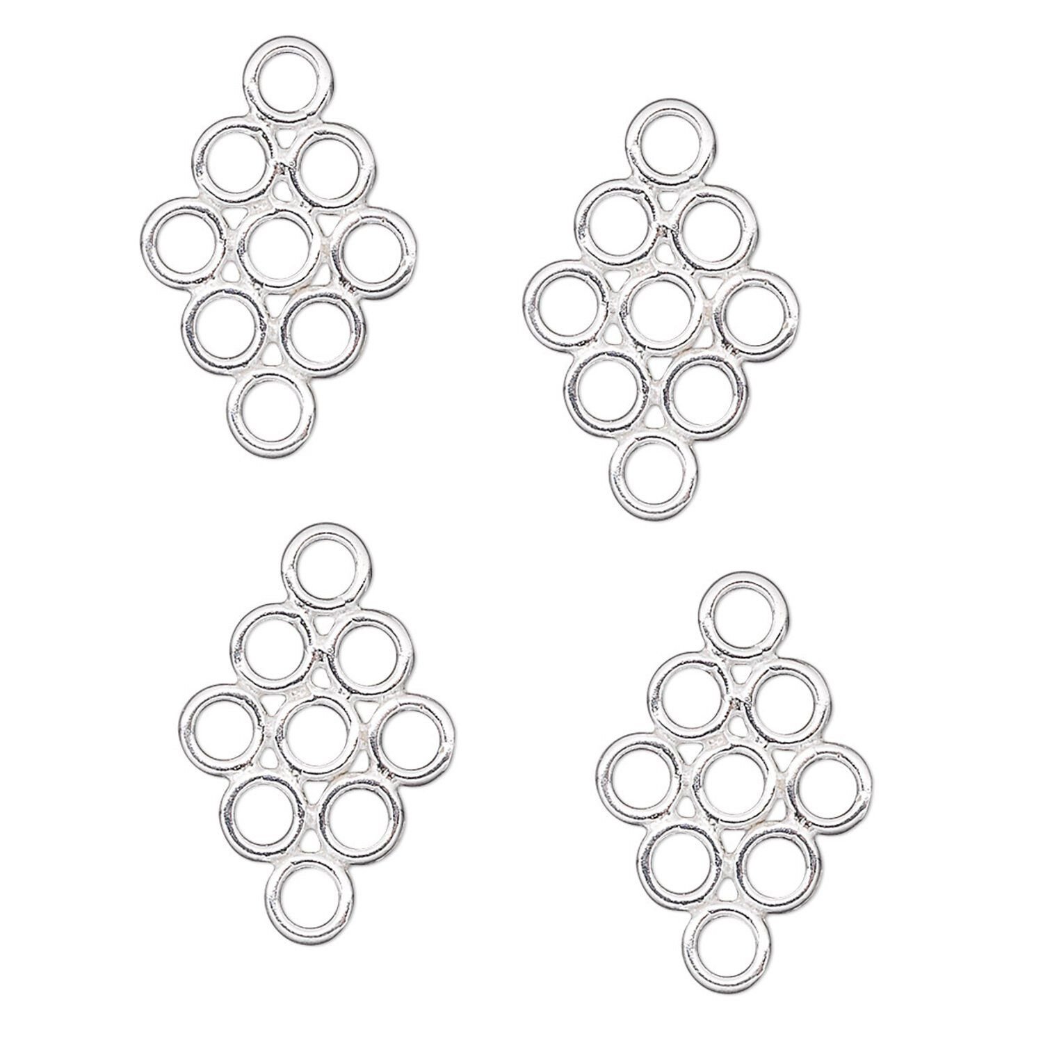 Loop, sterling silver, 17x11mm diamond, (9) 4mm rings. Sold per pkg of 4.