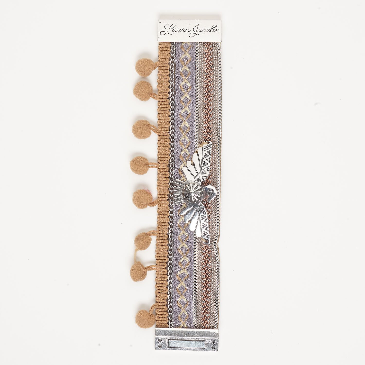 Bracelet, cuff 1pkg1 faux suede / antique silver-finished brass and steel, multicolored, 35mm width with thunderbird, 6-1/2 inches with magnetic clasp.