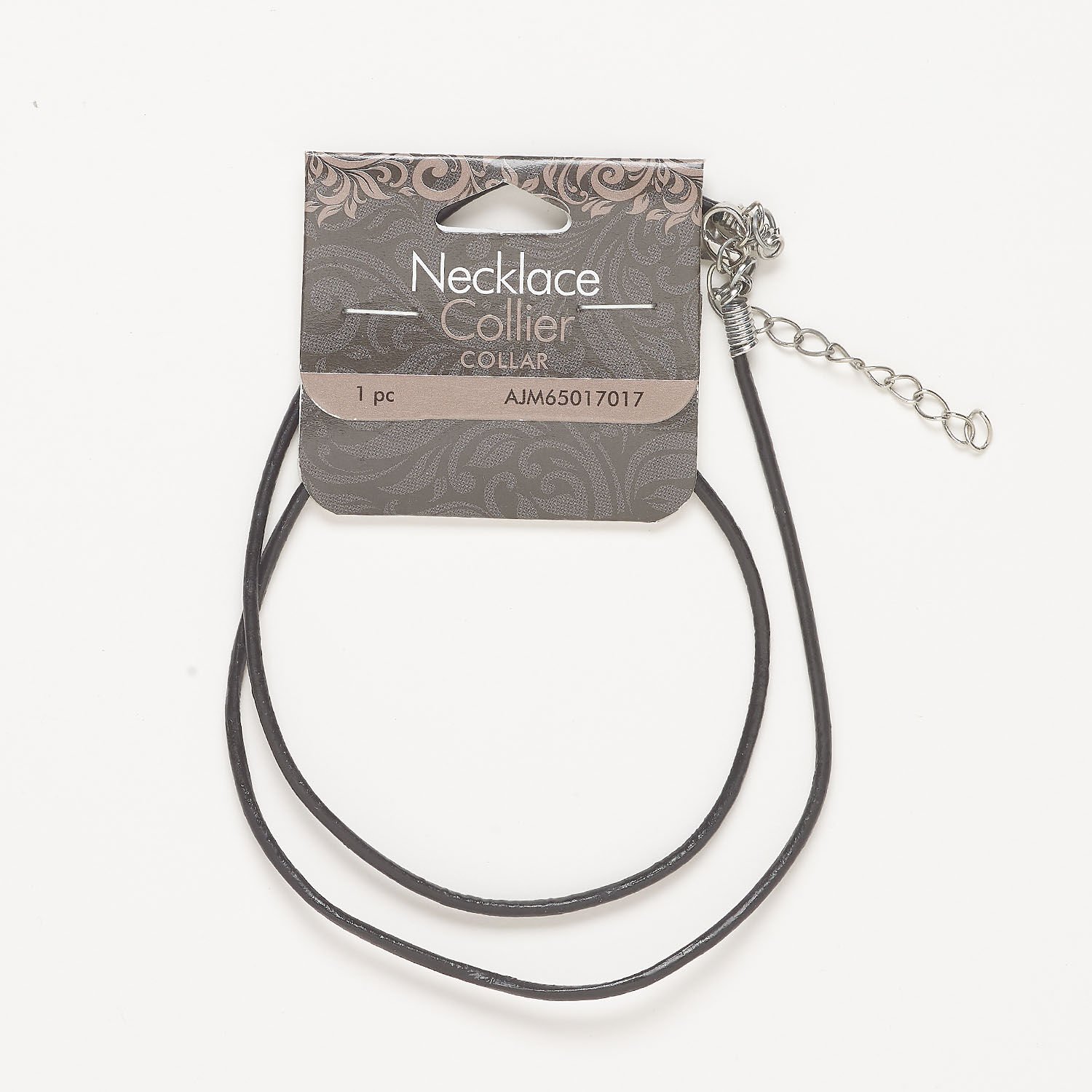 Necklace component 1pkg1, leather and antique silver-finished steel, black 2mm round with lobster claw clasp, 18 inches.