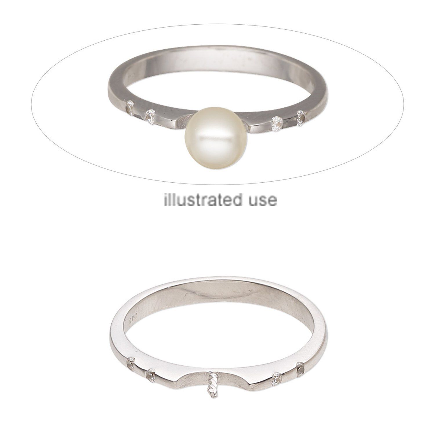 Turn this stunning sterling silver ring finding into the ring of your (or your customers') dreams. Add any 8mm half-drilled round bead or pearl to the twisted peg for a gorgeous piece of customized jewelry. Additional cubic zirconia stones are already set in the ring for added sparkle. Ring has an anti-tarnish coating.