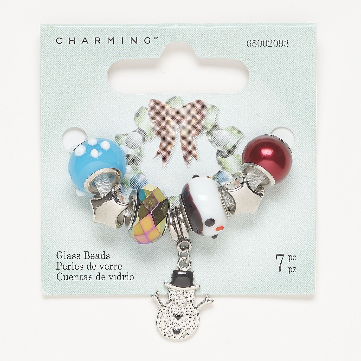 Bead assortment 1pkg7, glass / enamel / antique silver-finished brass and stainless steel, multicolored, 11x9mm-17x15mm mixed shapes.