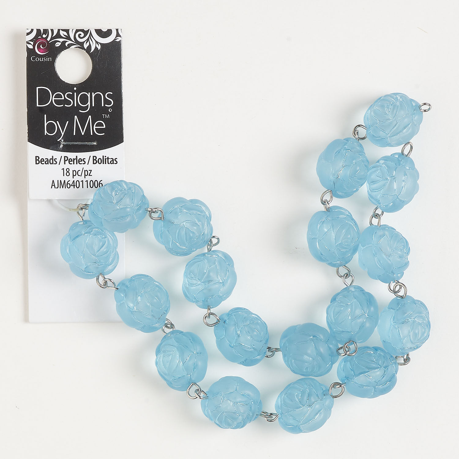 Link 1pkg18, antique silver-finished steel and acrylic, light blue, 16mm frosted carved flower.