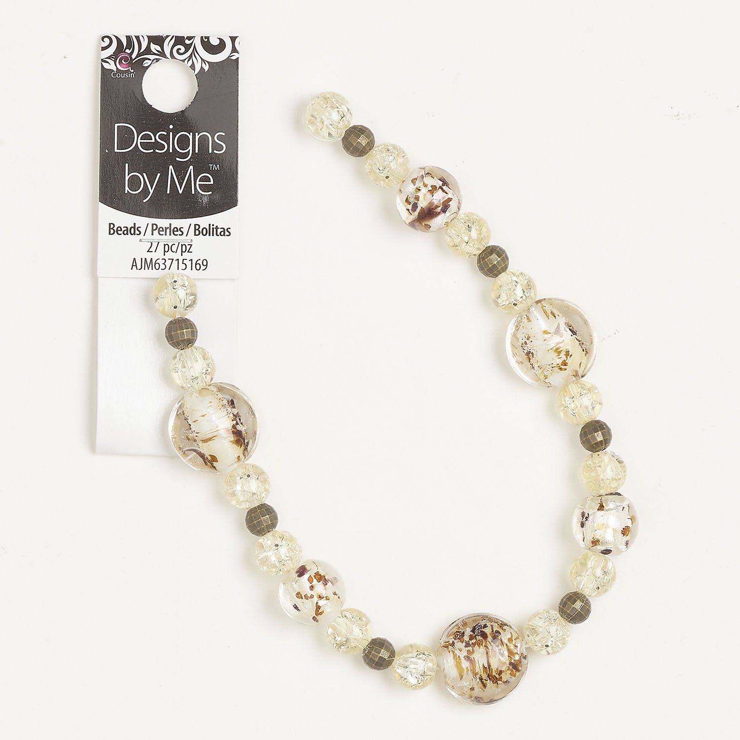 Bead assortment 1pkg27, antique brass-finished brass and glass, mixed colors with silver-colored foil, 6-16mm mixed round.