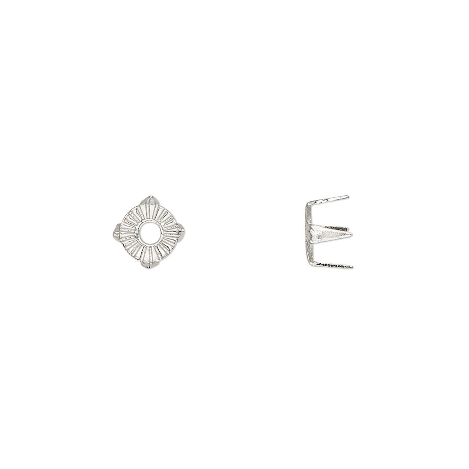 Rhinestone mount, imitation rhodium-plated brass, 5.5x4mm with SS20 rose or rose 4-prong tiffany setting. Sold per pkg of 100.