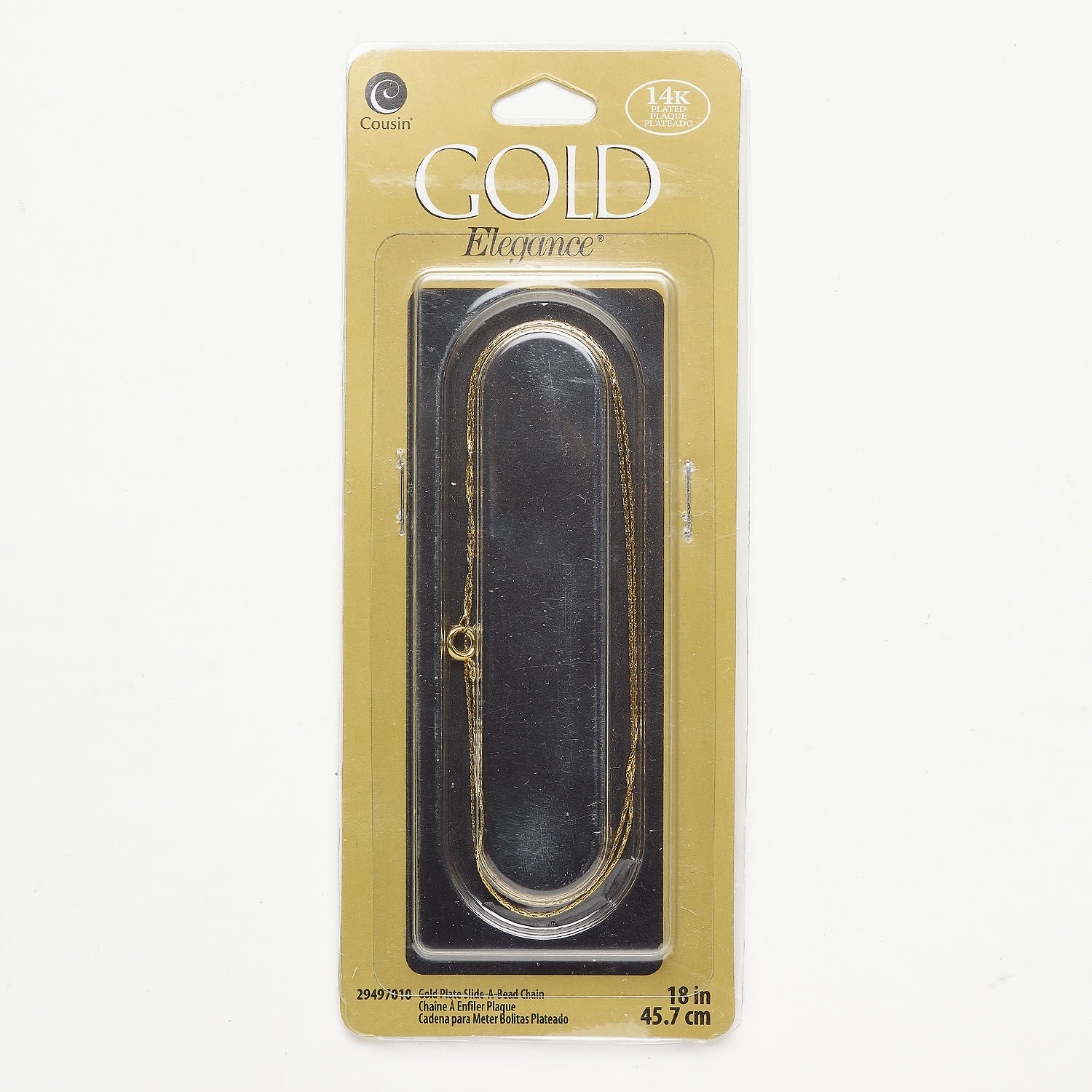 Chain 1pkg1 gold-plated slide-a-bead, 0.8mm / springring clasp, copper / brass 18 inch