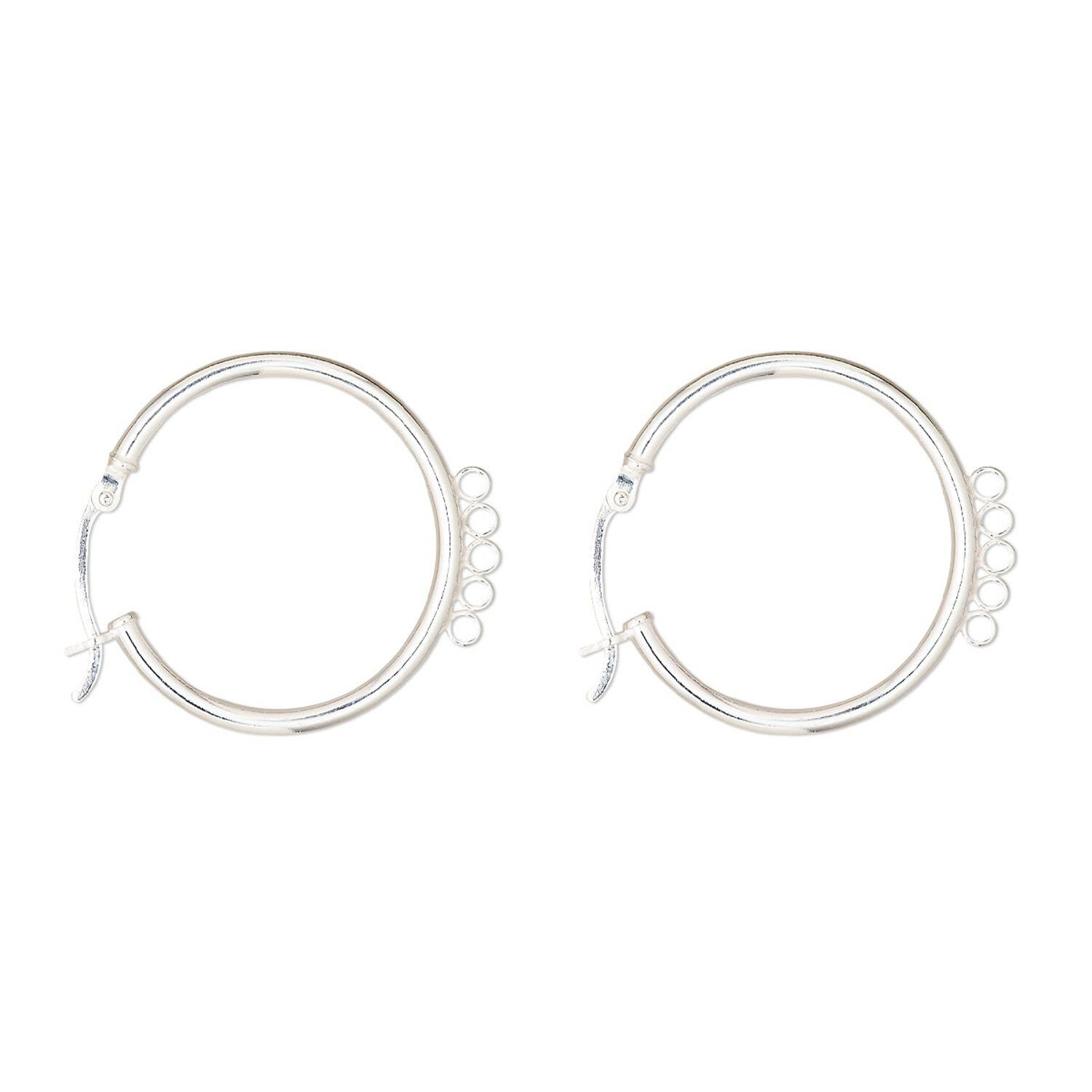 Earring hoop 1pkg2 sterling silver, 25mm round / 5 closed loop / latch-back, 1 pair