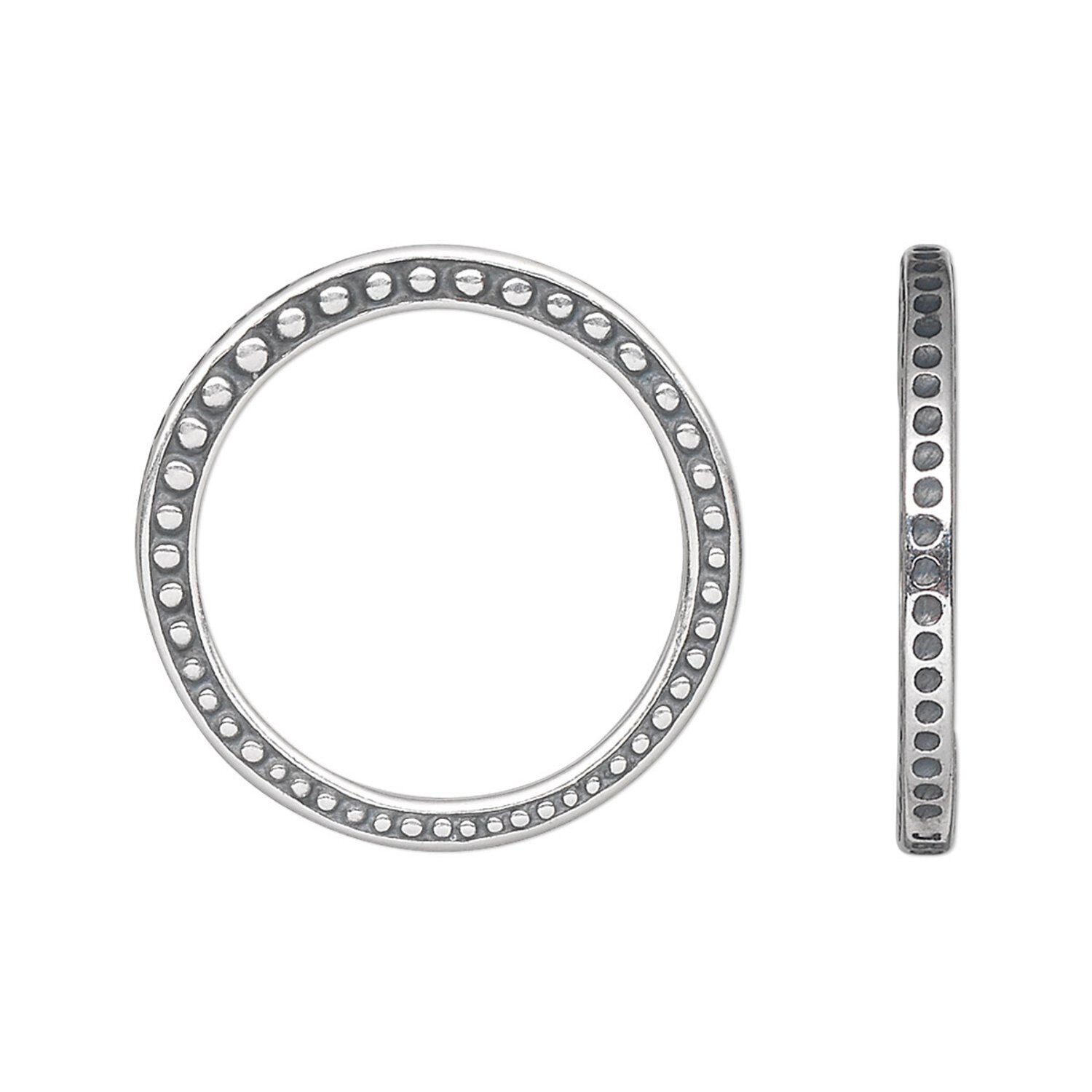 Antique silver-plated pewter (tin-based alloy) components from JBB Findings offer the look of precious metal. Made in Israel, the high-quality components have a double-sided graduated size and dot design.