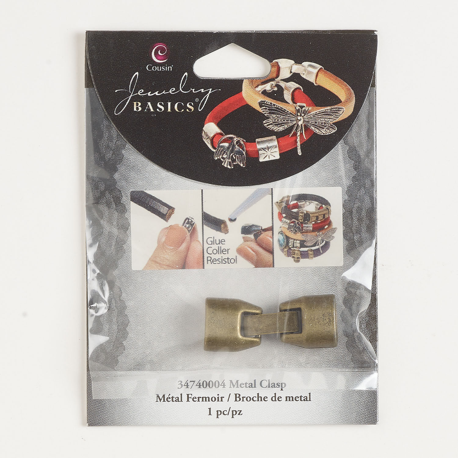 Clasp fold-over 1pkg1, 32x13mm / glue-in ends, antique gold-finished brass 1-strand