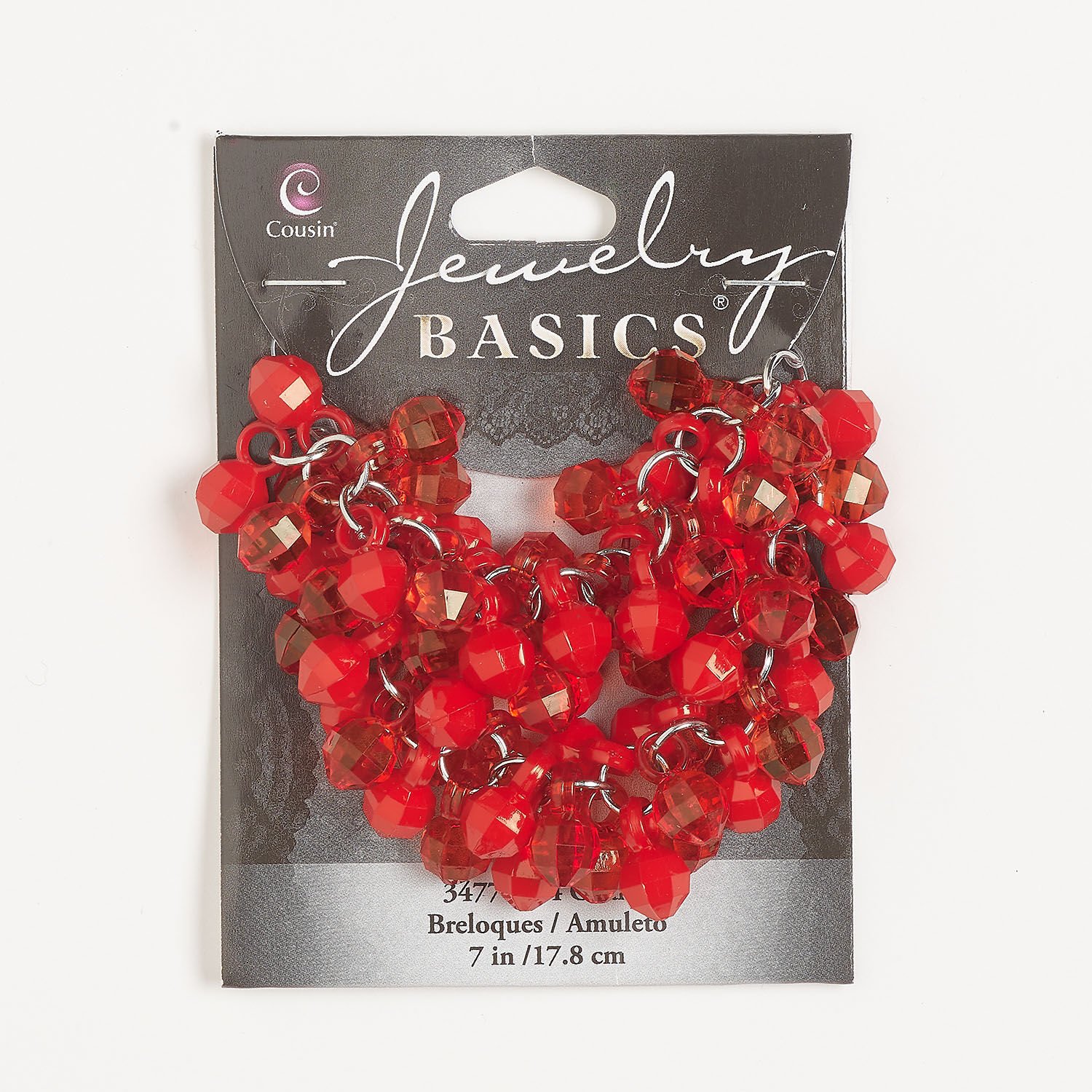 Component 1pkg1, steel and acrylic, red, 8mm faceted round drops, 7 inches.