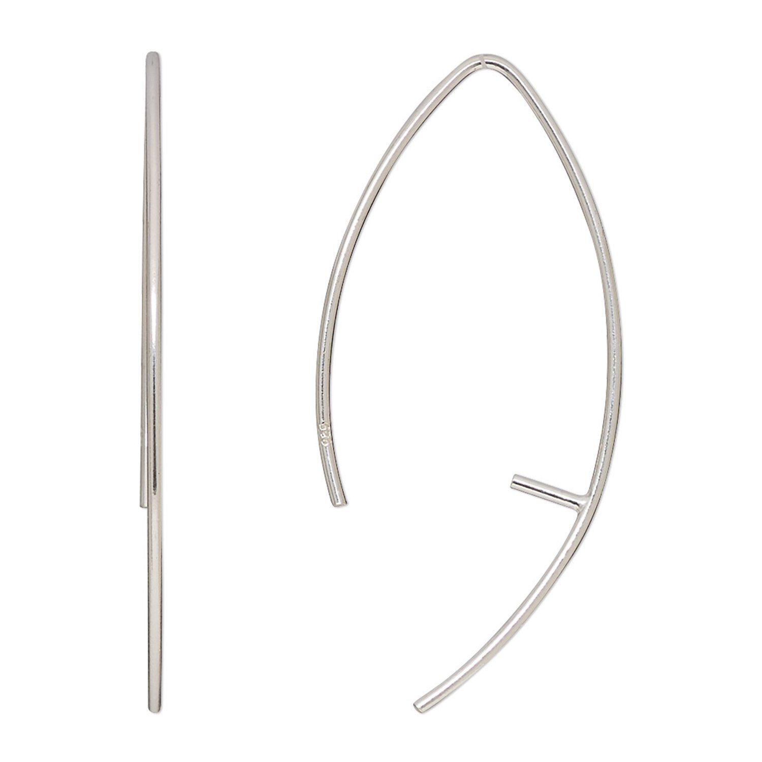 Ear wire 1pkg2 sterling silver, 38mm marquise / 4mm peg / 8-12mm half-drilled round setting, 18 gauge 1 pair