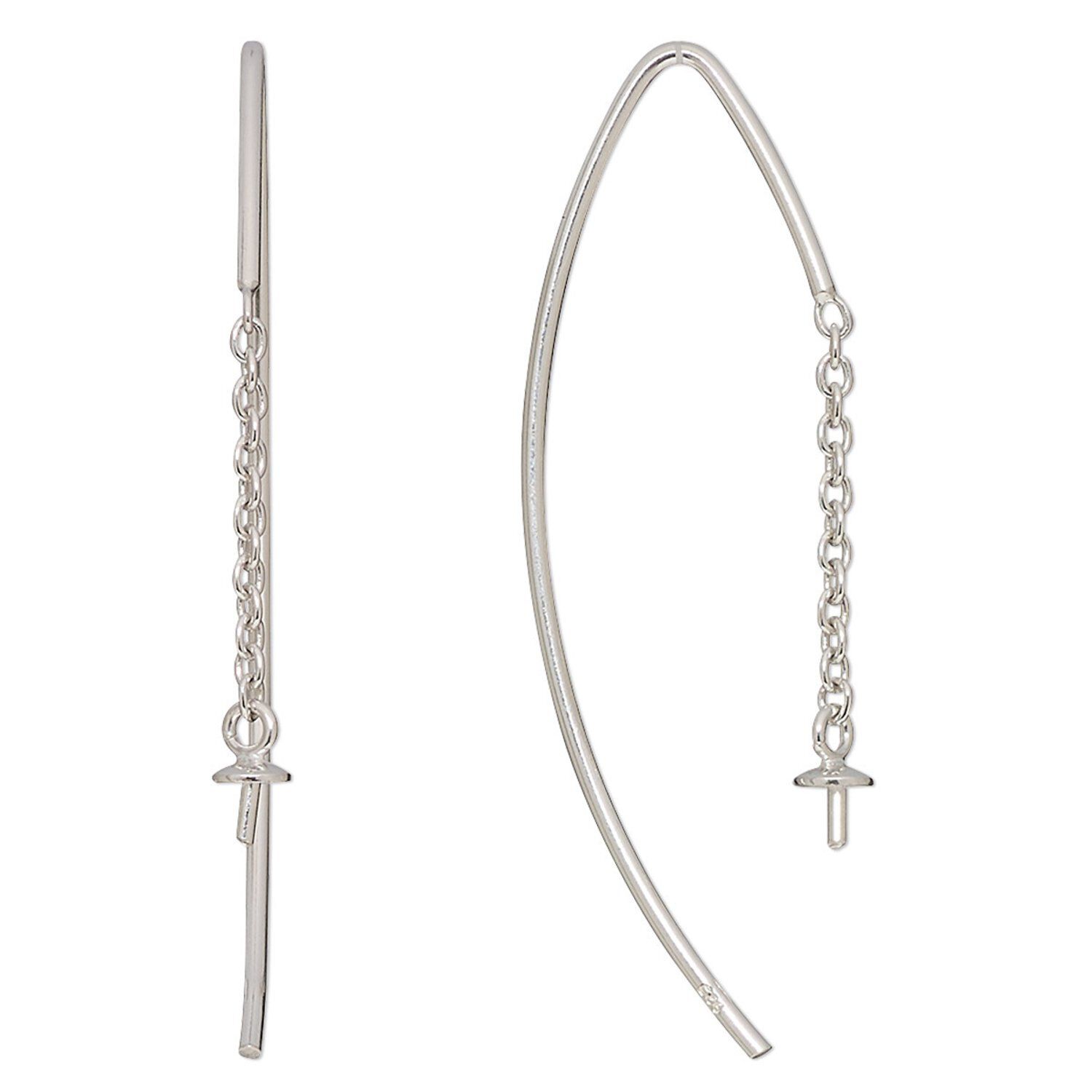 Ear wire 1pkg2 sterling silver, 32mm marquise / 3mm cup / 2.5mm peg / 6mm half-drilled round setting, 19 gauge 1 pair