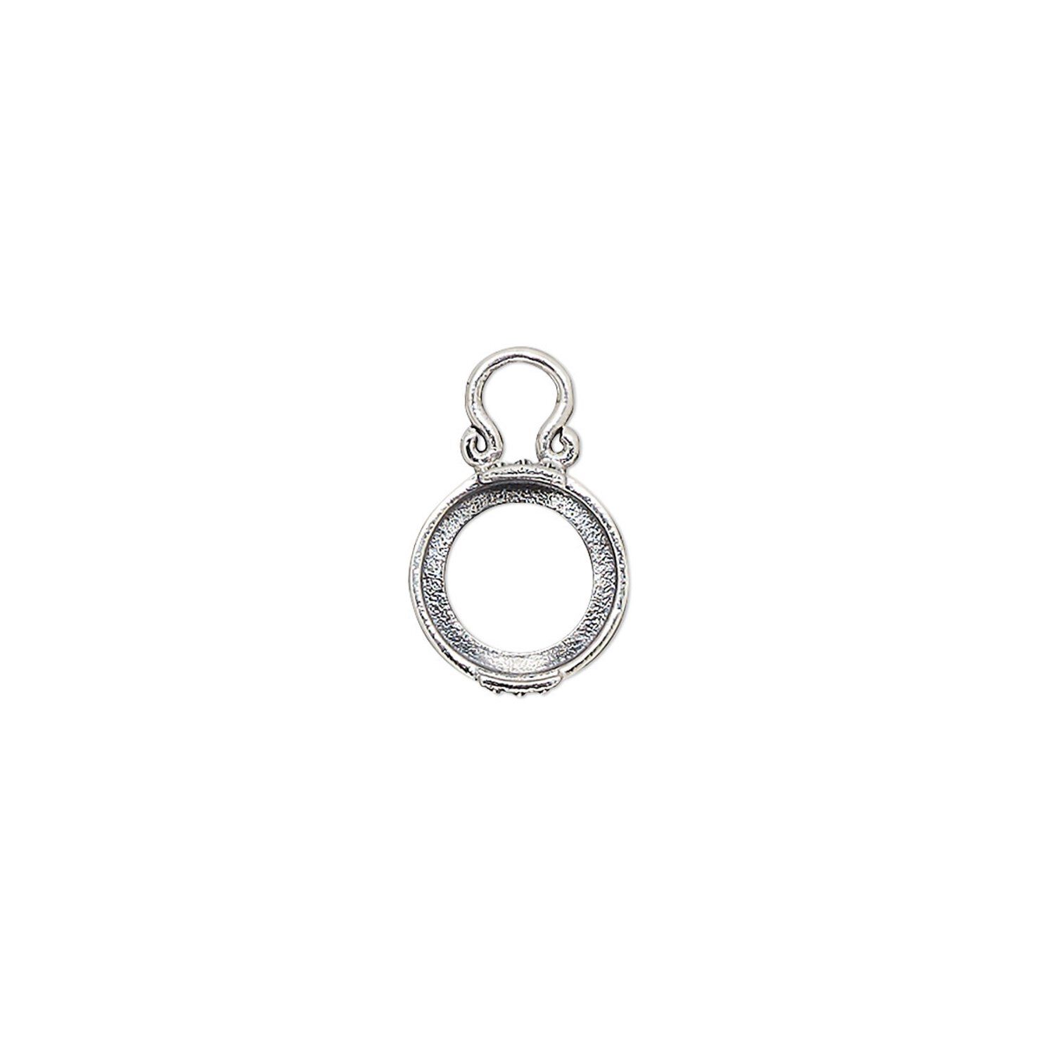 Drop, antiqued sterling silver, 9mm round with dot design and open back with 8mm 2-prong round cabochon setting. Sold individually.