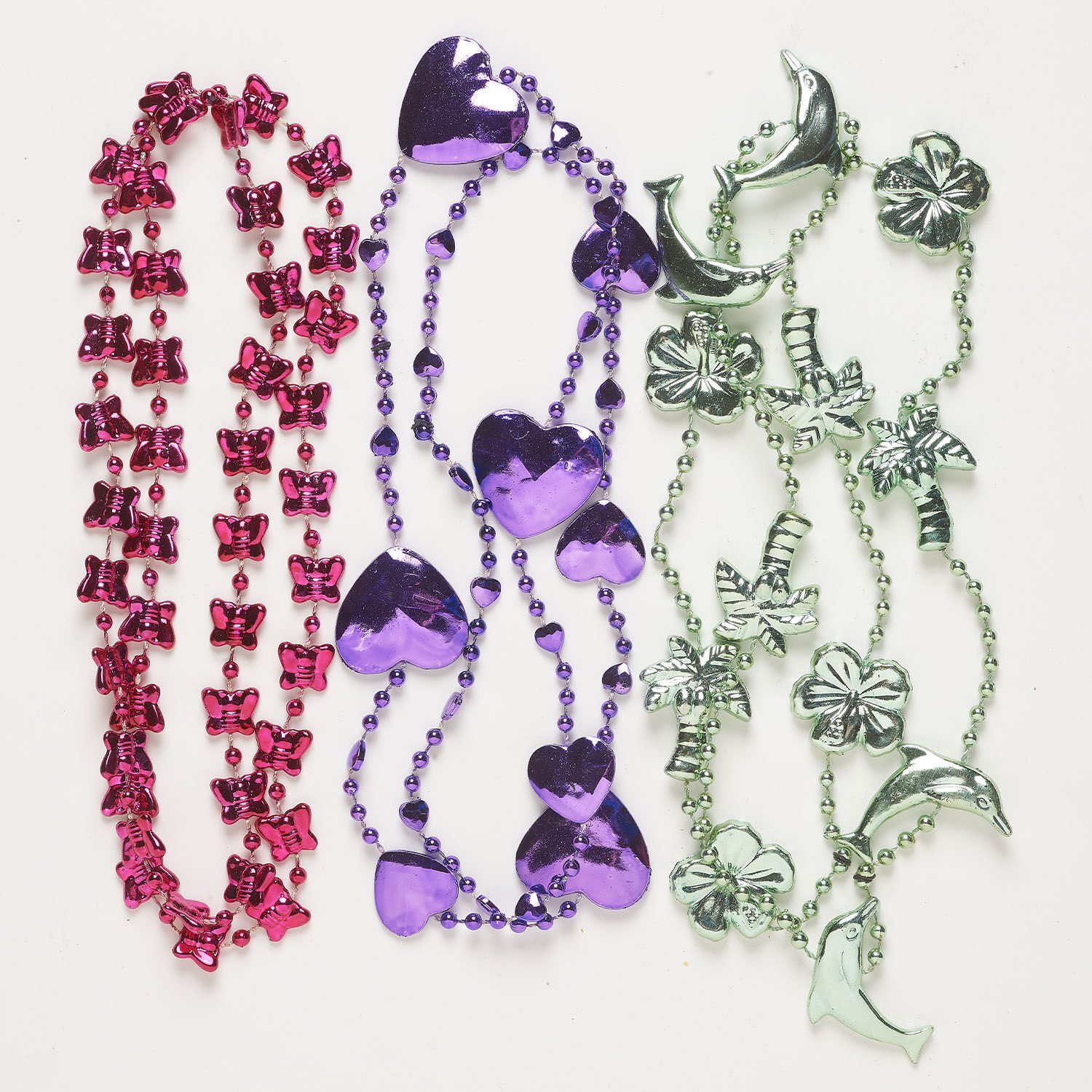 Colors can include pink, purple, green and more. Shapes can include butterfly, heart, dolphin and more.