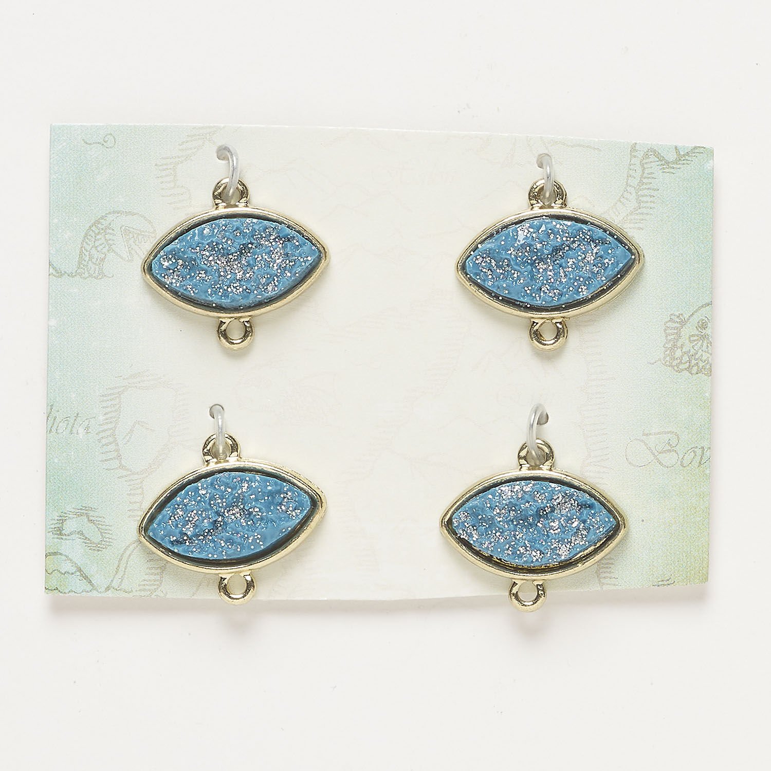 Link 1pkg4, gold-finished brass and "druzy" (resin), blue, 20x12mm marquise.