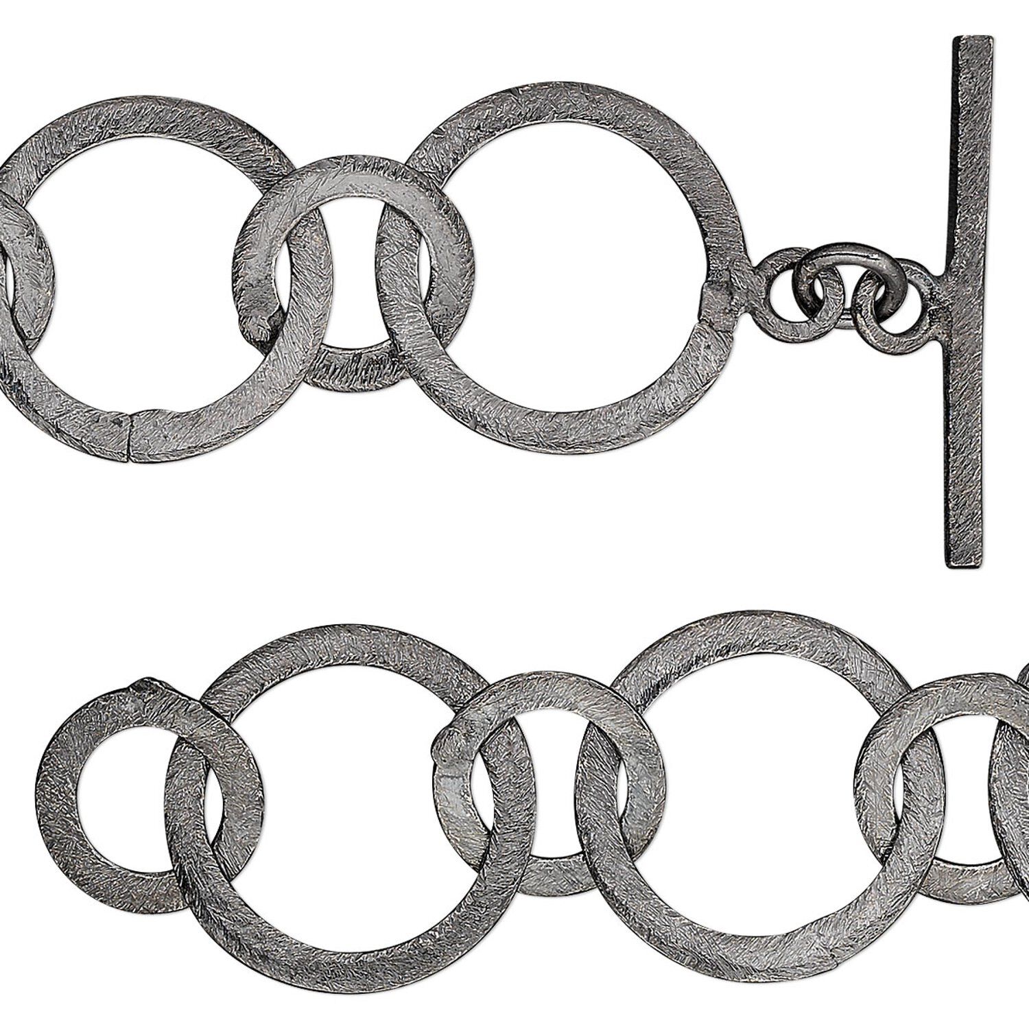 Chain, gunmetal-finished copper, 19mm and 12mm textured round, 36 inches with toggle clasp. Sold individually.