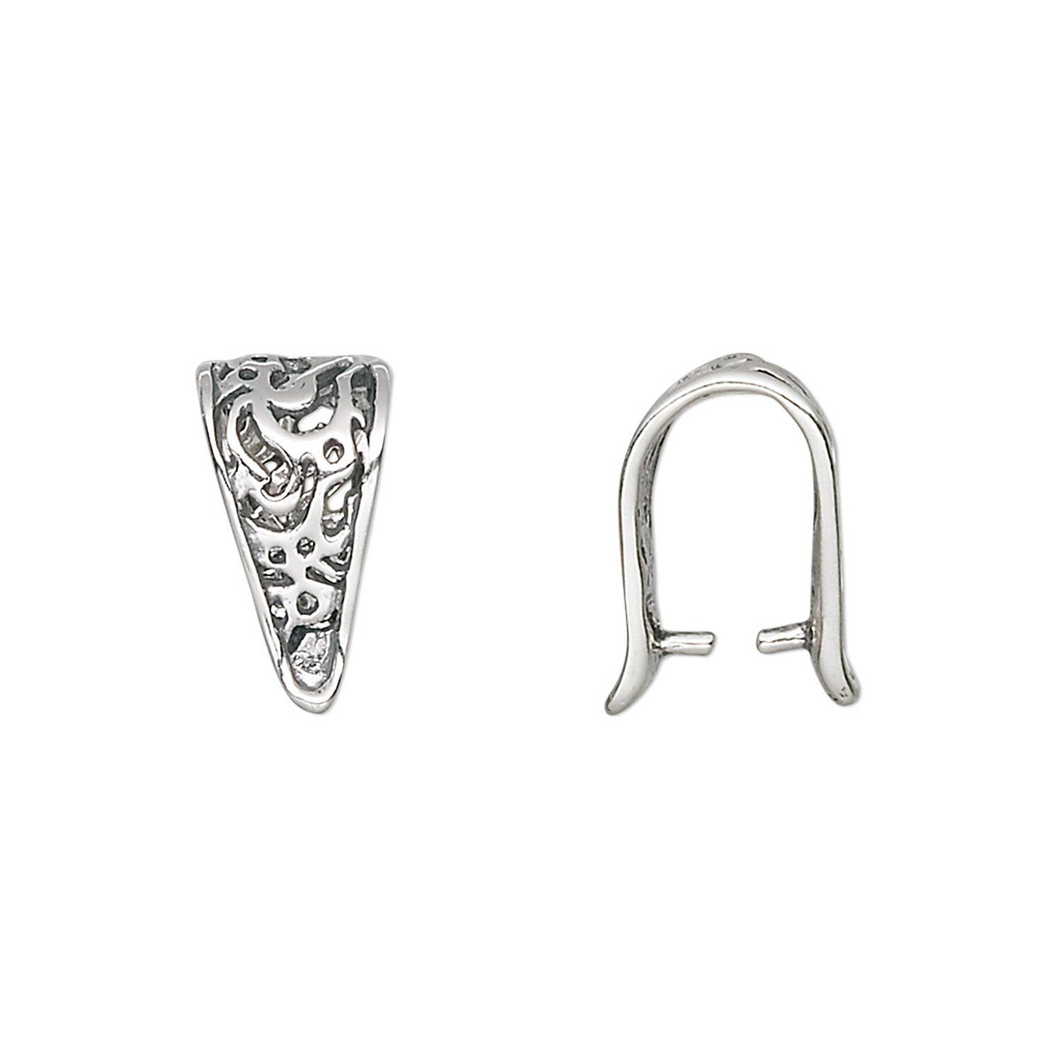 Bail, ice-pick, antiqued sterling silver, 14x8mm fancy triangle, 9mm grip length. Sold individually.