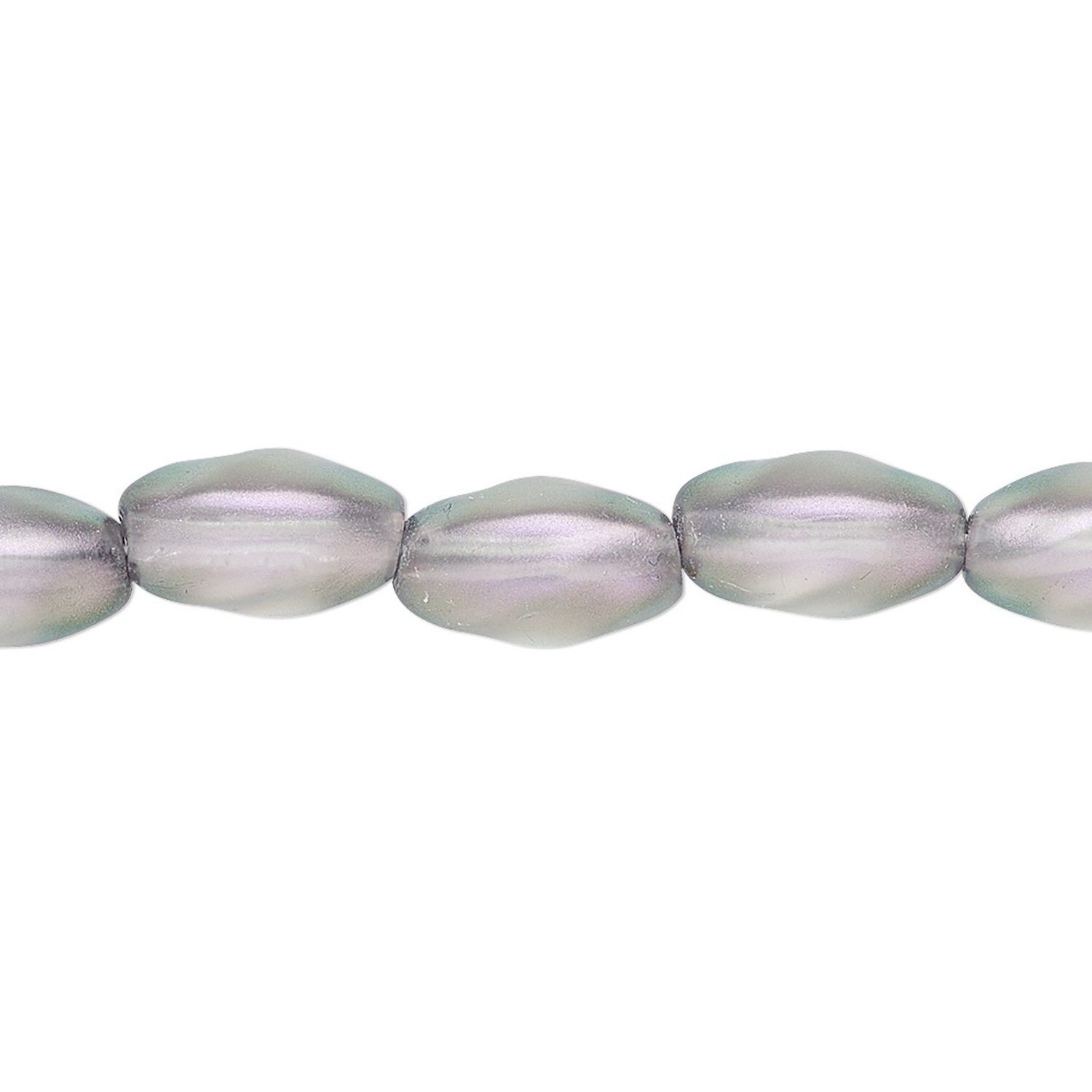 Bead, Czech pressed glass, pearlized silver, 12x7mm twisted oval. Sold per 15-1/2" to 16" strand, approximately 30 beads.