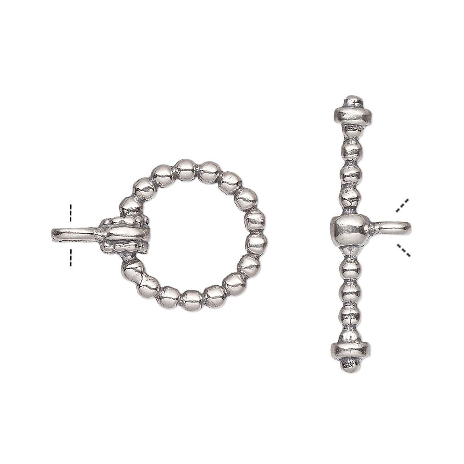 Sterling silver toggle clasp. Toggle and hook clasps hold jewelry secure around wrists or necks.
