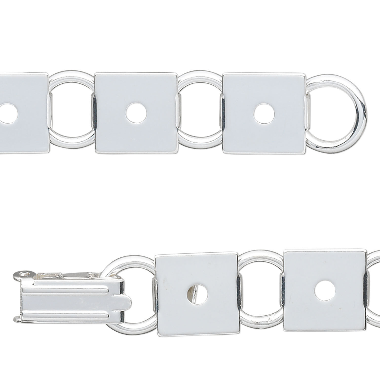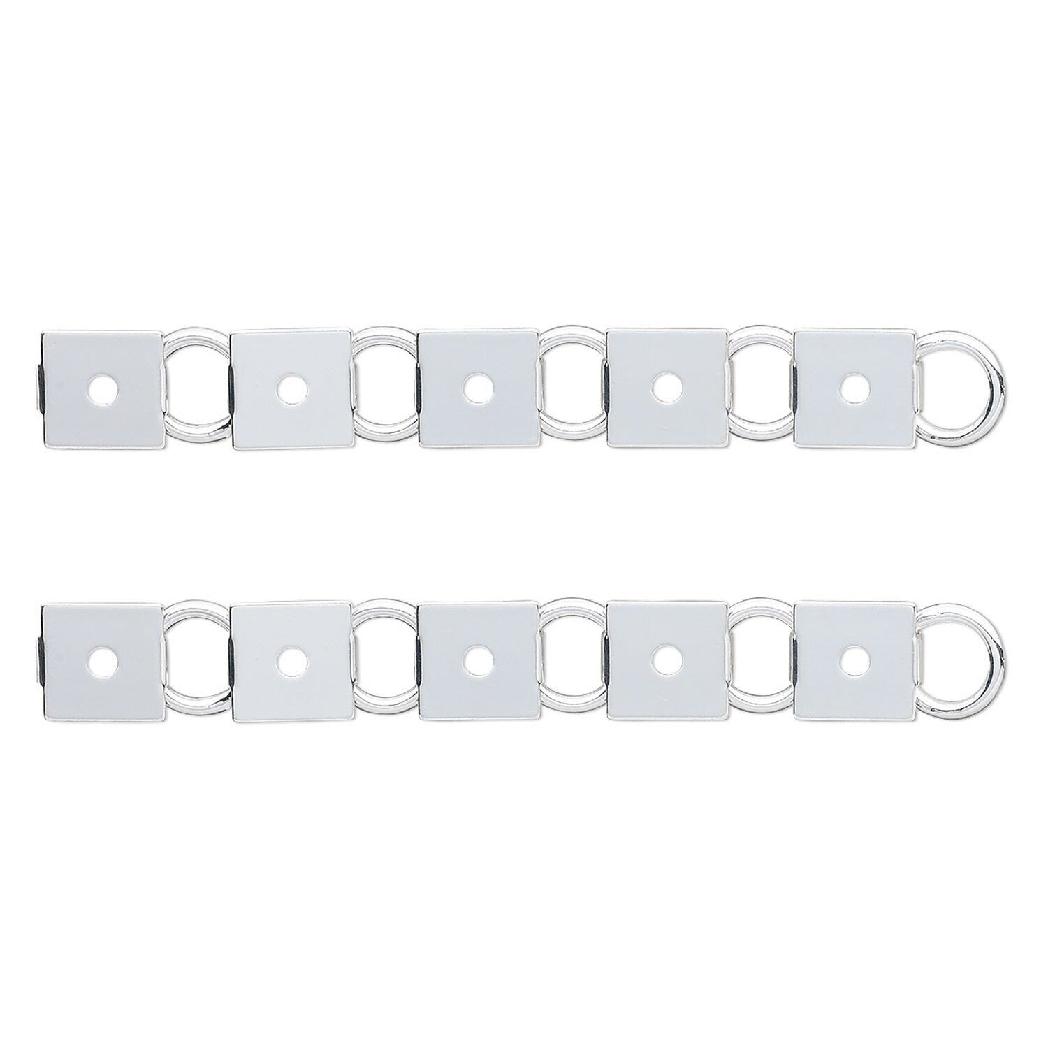 Bracelet component, silver-plated steel, (12) 10mm square link settings, 7 inches with fold-over clasp. Sold per pkg of 2.