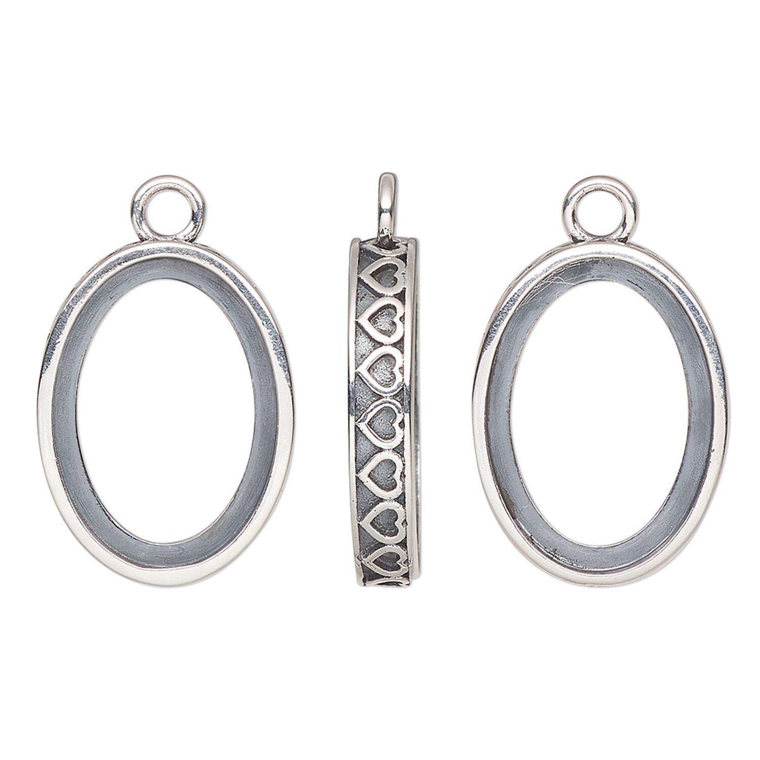 Drop, antiqued sterling silver, 20x15mm oval with 18x13mm oval setting and heart design with open back. Sold individually.